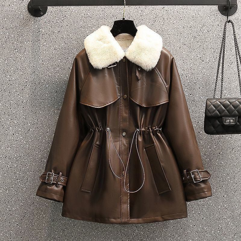 Abrigo mujer entallado efecto cuero con cuello desmontable - Yiva