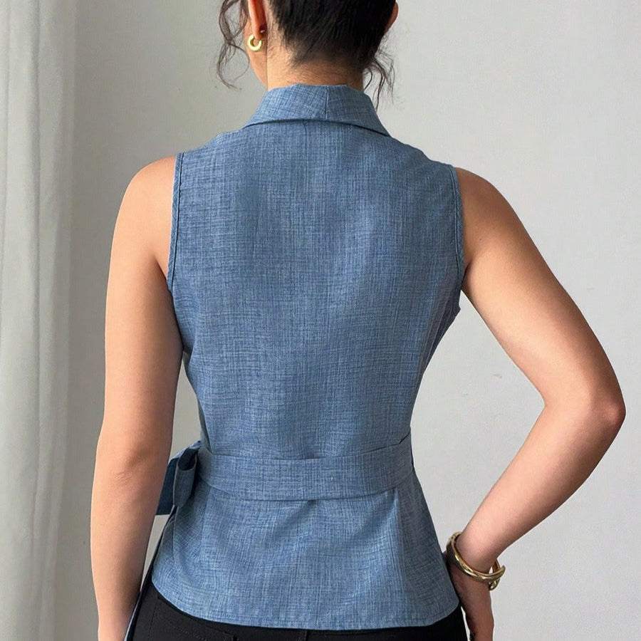 Blusa sin mangas para mujer de lino cruzado estilo entallado - Elvira