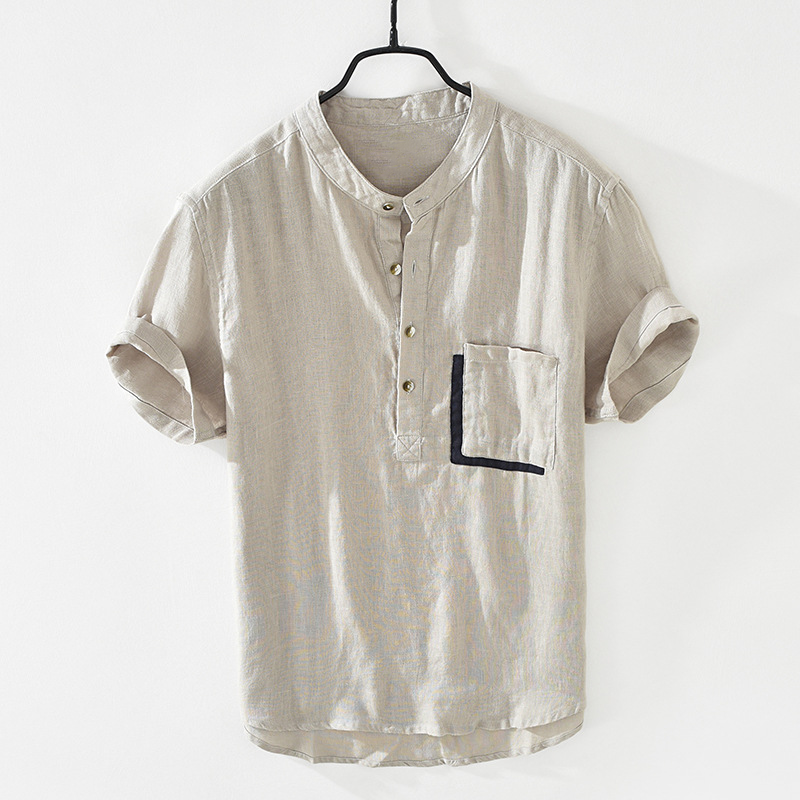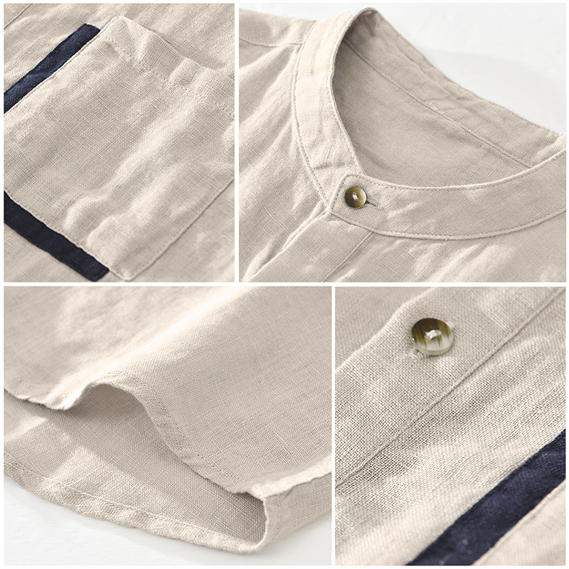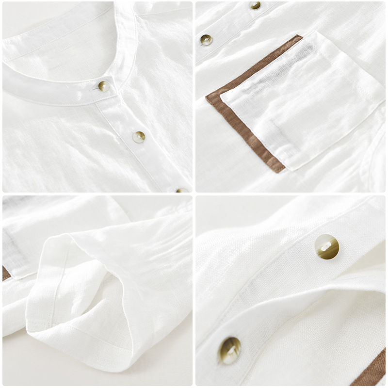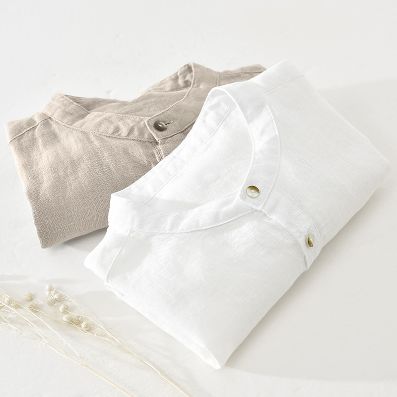 Confeccionada con lino ligero y ligeramente arrugado, este básico de uso diario ofrece una sensación notablemente cómoda y transpirable.