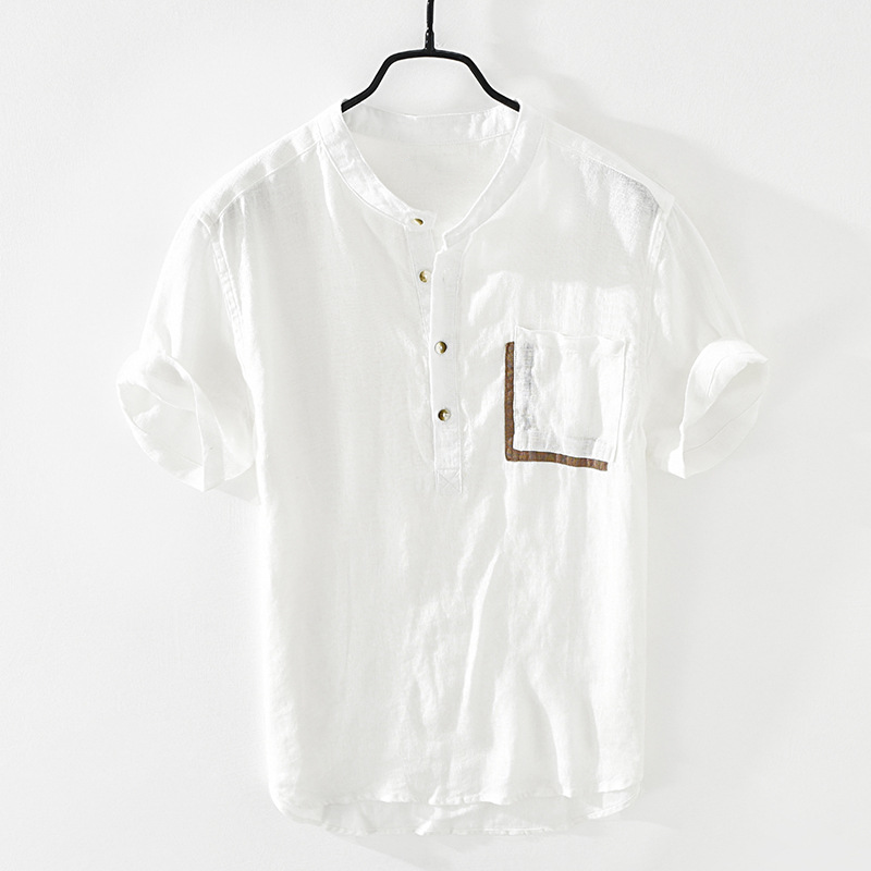 Cuando una simple camiseta no es suficiente, la Camisa de Manga Corta de Lino Brooklyn combina un ajuste relajado con acentos de color para darle algo especial al básico estándar.