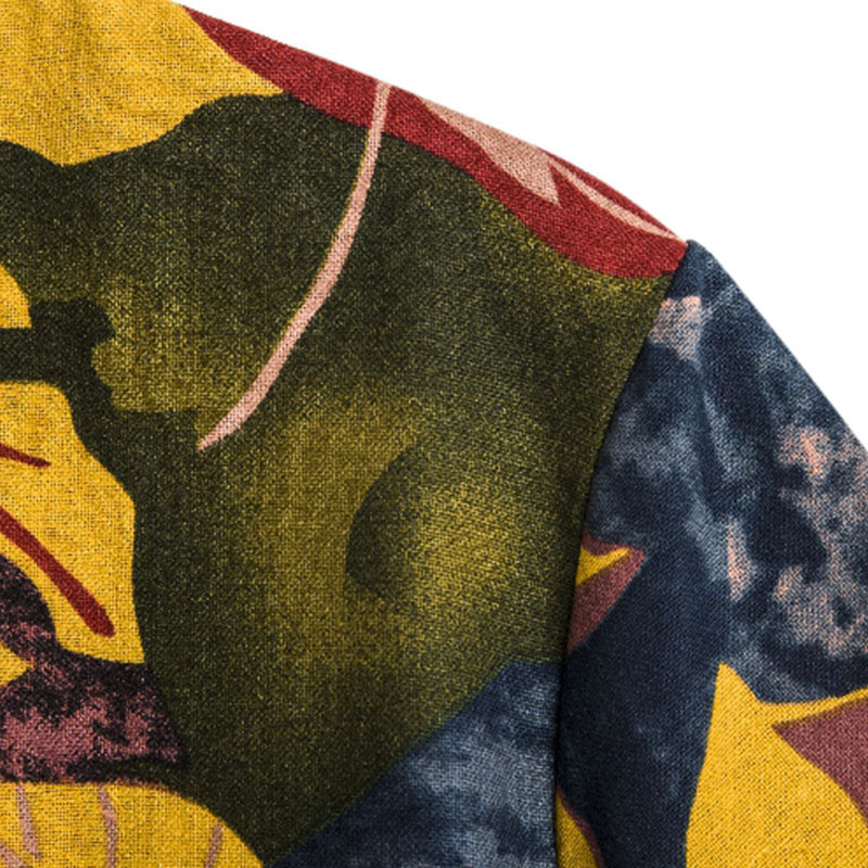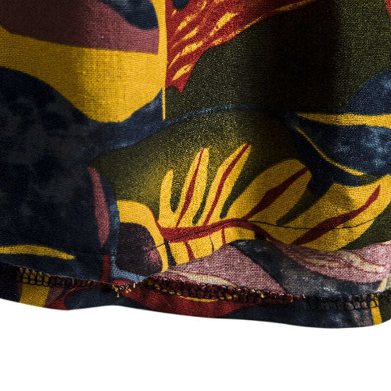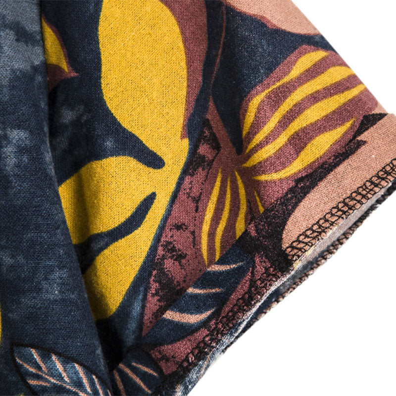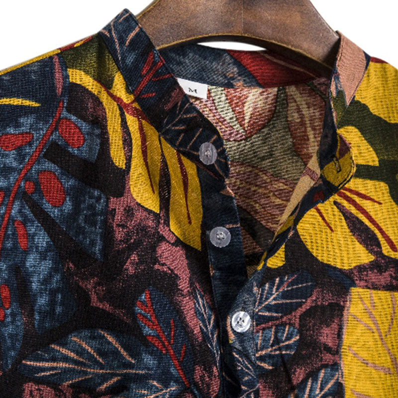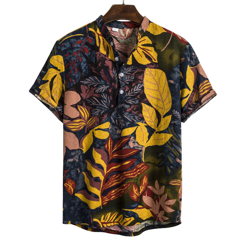 Camisa de manga corta para hombre con estampado tropical, bolsillo y tapeta de botones