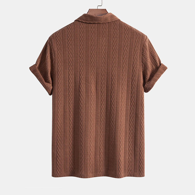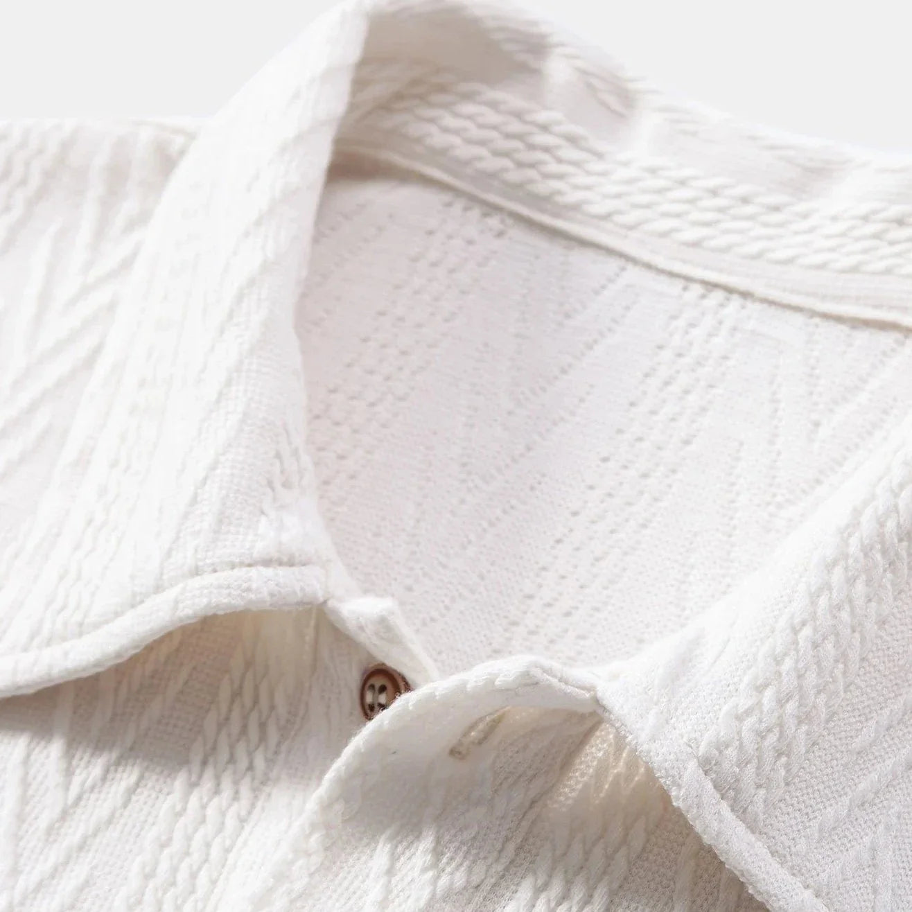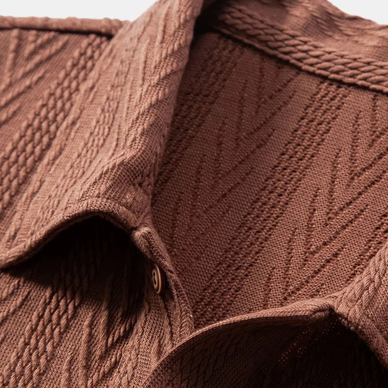 Esta camisa de punto Jacquard de Velour ultra suave ofrece una comodidad duradera en una lujosa tela de terciopelo. Tejida a mano con el finísimo punto Jacquard, esta camisa de inspiración vintage busca proporcionar la experiencia táctil más placentera. Con un ajuste entallado que permite moverse con comodidad y dejar pasar la brisa, esta camisa es una fusión perfecta de estilo y confort.