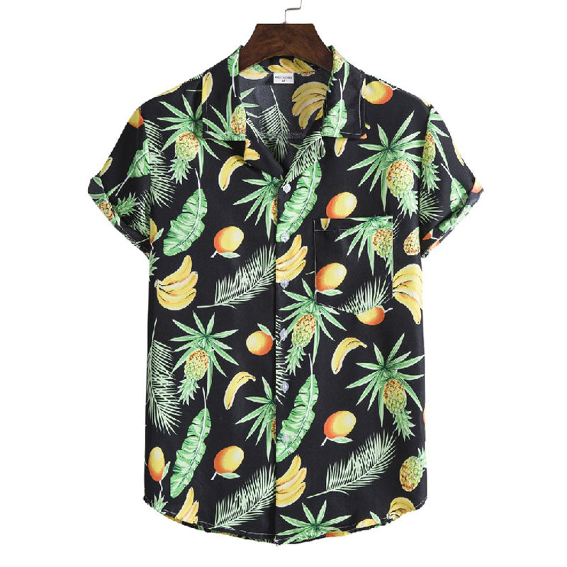 Elegante camisa de hombre de manga corta con estampado de frutas confeccionada en algodón