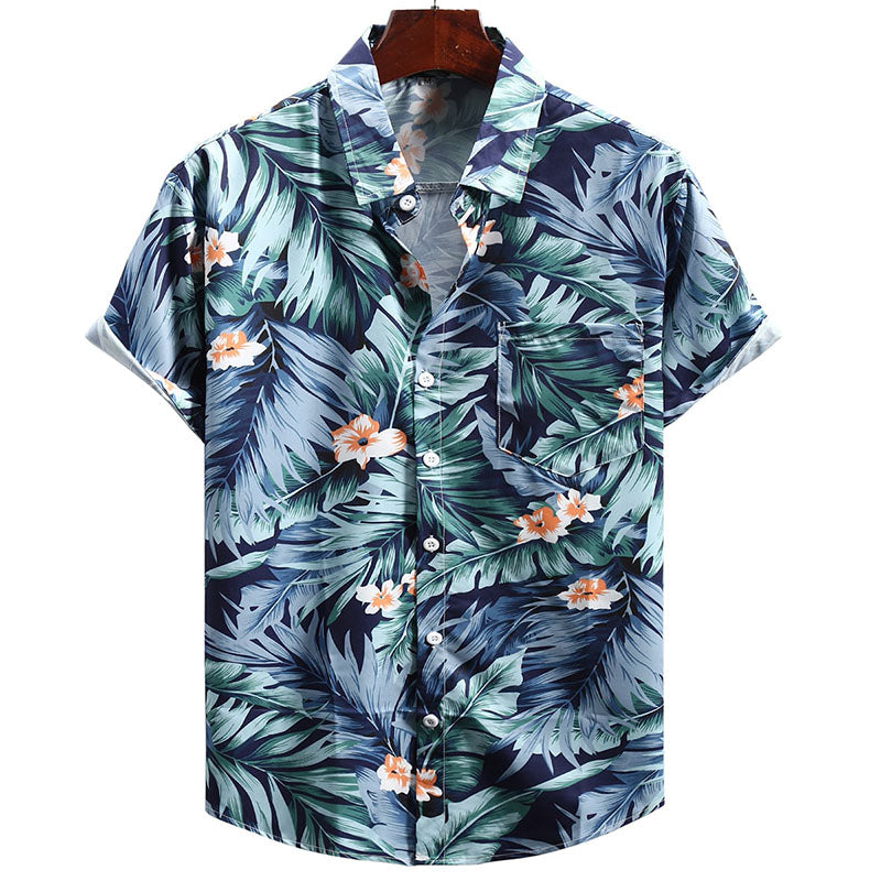 Elegante camisa de manga corta para hombre con diseño hawaiano