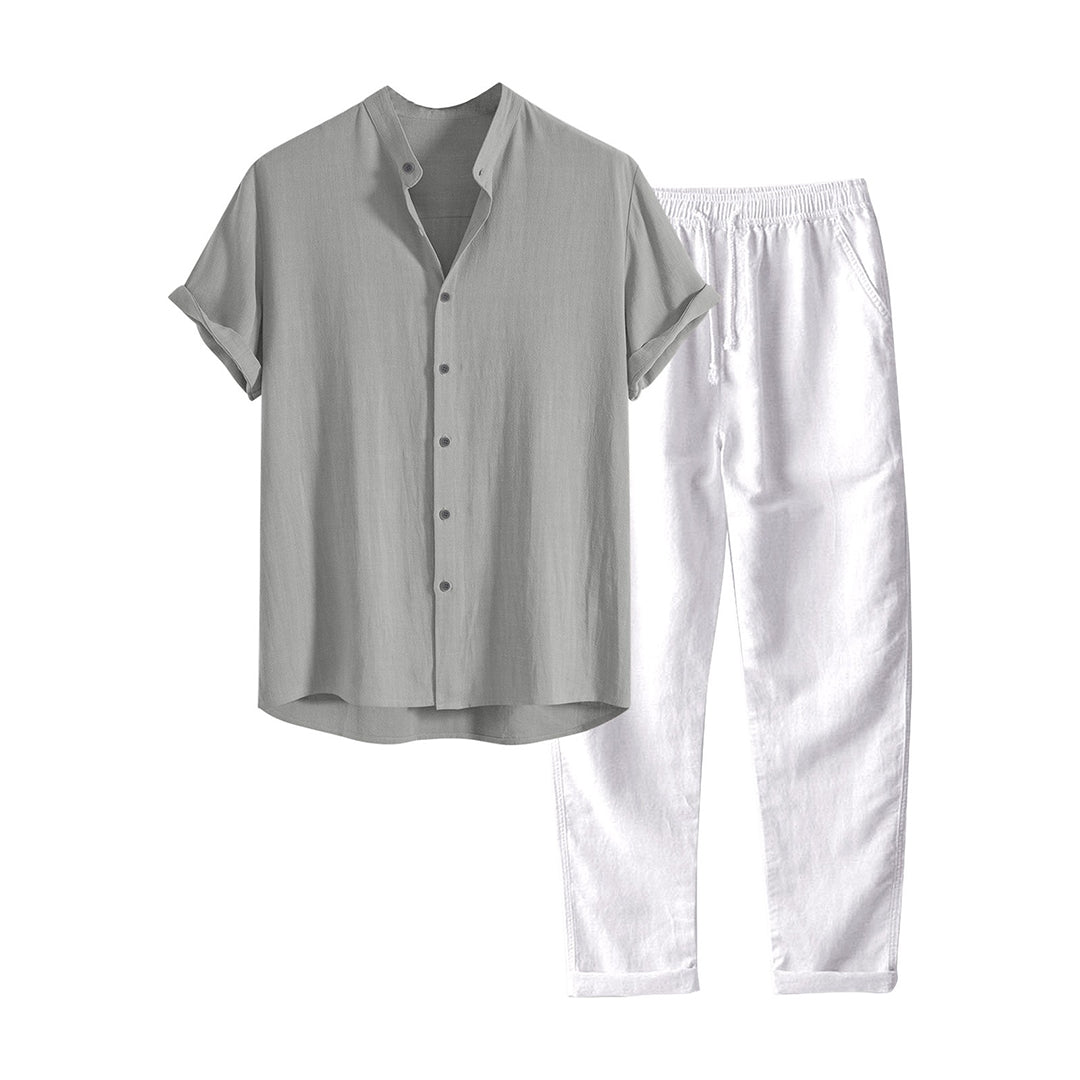 Aquí tiene la pareja perfecta con el conjunto LARS Casual Summer Set para lucir bien y sentirse fresca en el calor del verano. Este conjunto es la combinación definitiva de estilo y comodidad. Consta de una elegante camisa de manga corta y unos pantalones perfectamente entallados que son perfectos para cualquier ocasión veraniega. Está confeccionado en poliéster.