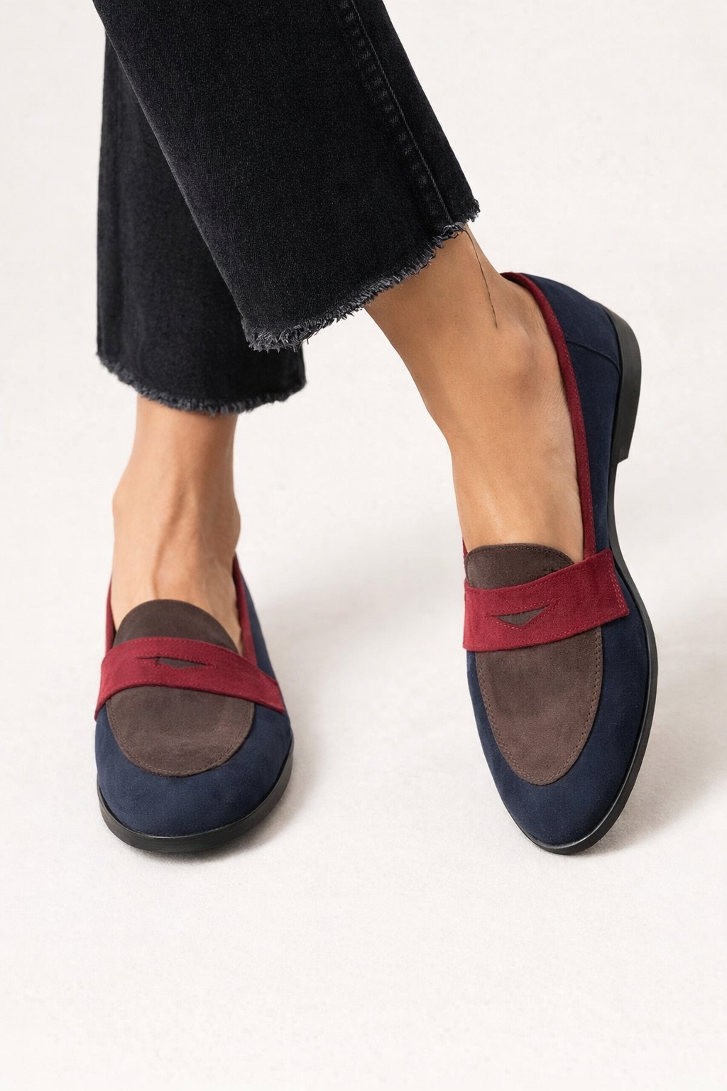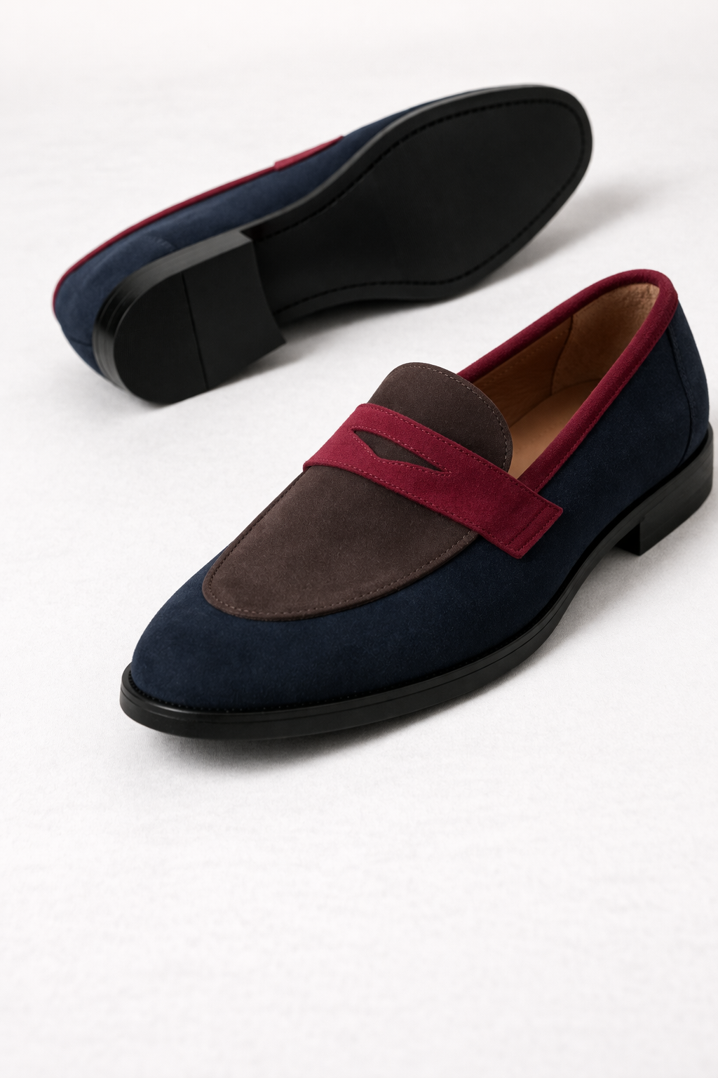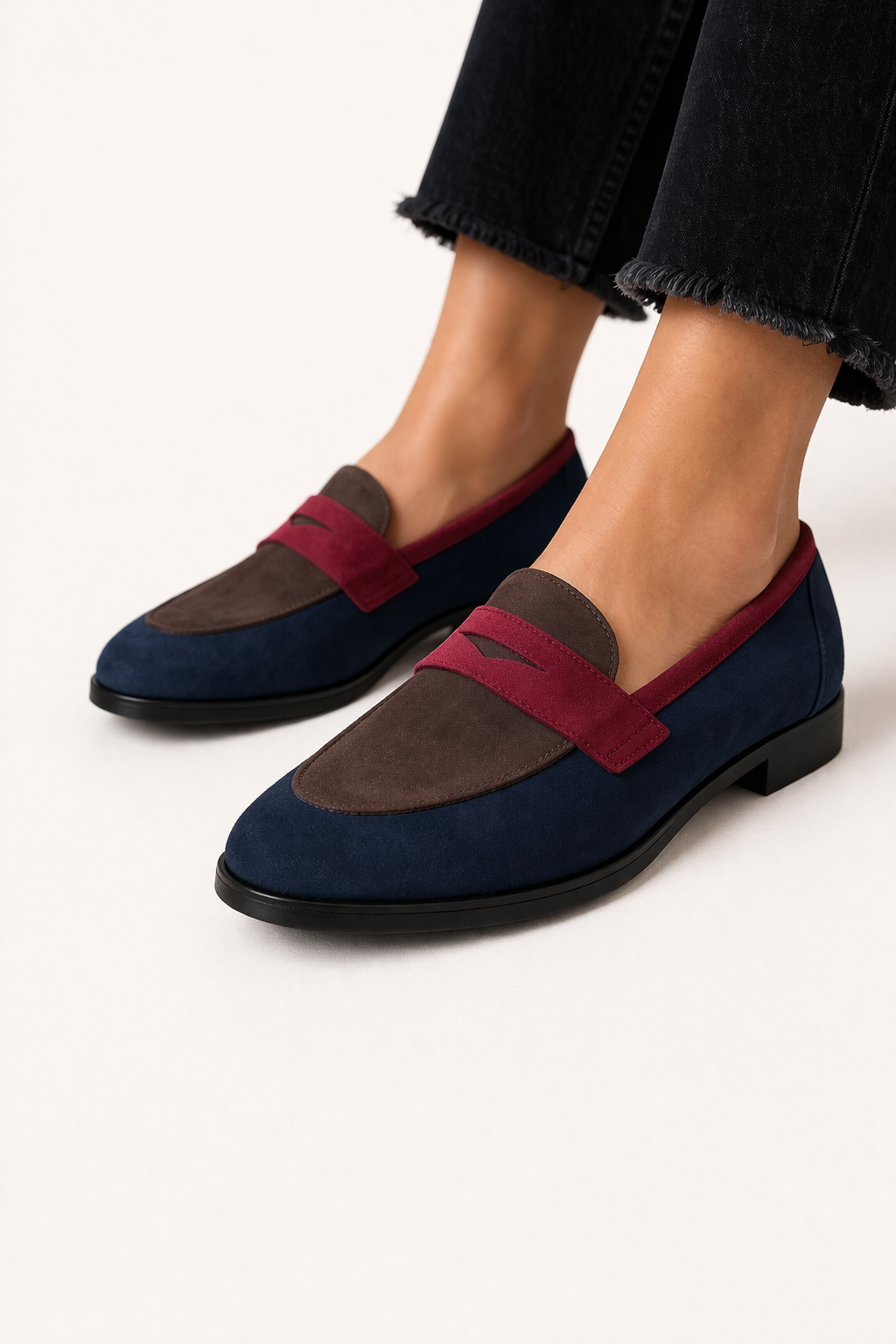 La combinación de piezas en la parte delantera hace que este mocasín se vea más trabajado que un modelo laso. La banda frontal marca mejor el diseño y le da un acabado más serio, mientras la forma cerrada mantiene una línea clásica que encaja bien con pantalones rectos, jeans o ropa más formal. Es un zapato bajo que se ve más cuidado desde el primer vistazo.