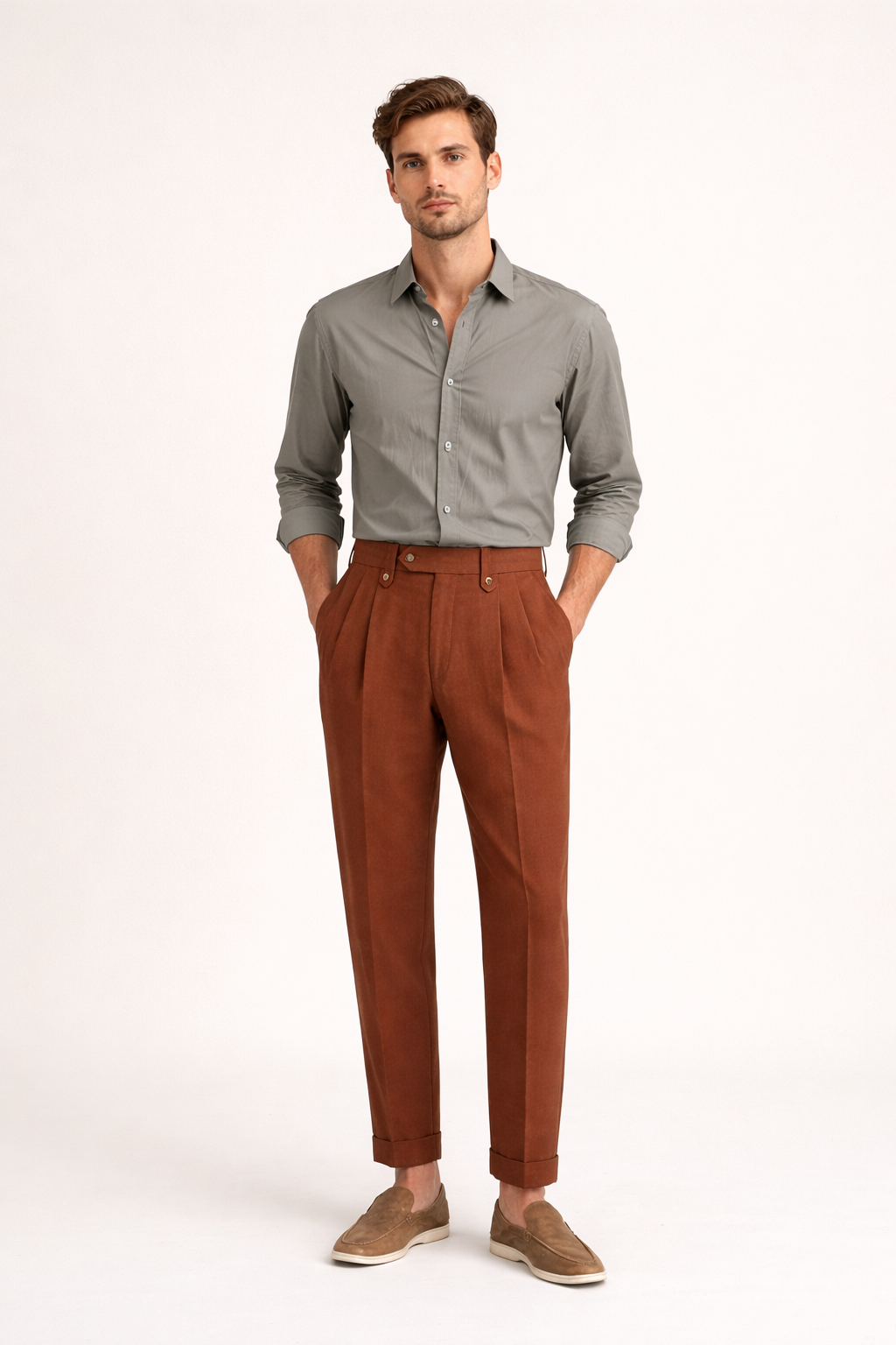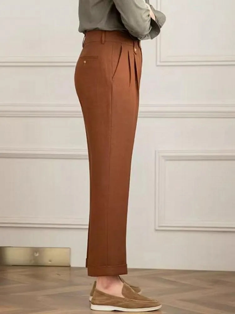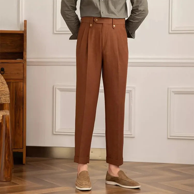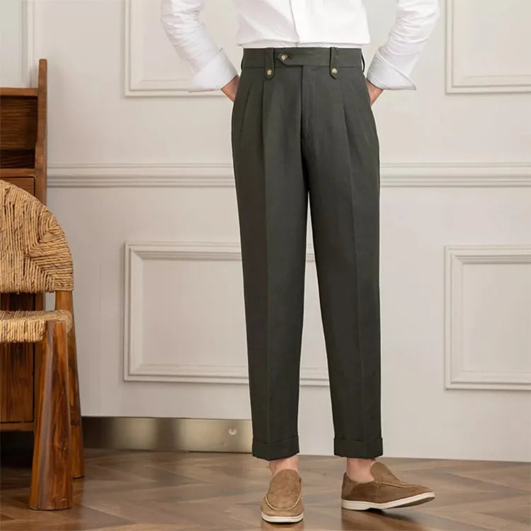 Pantalón recto de hombre con pinzas y cintura alta - Adrien