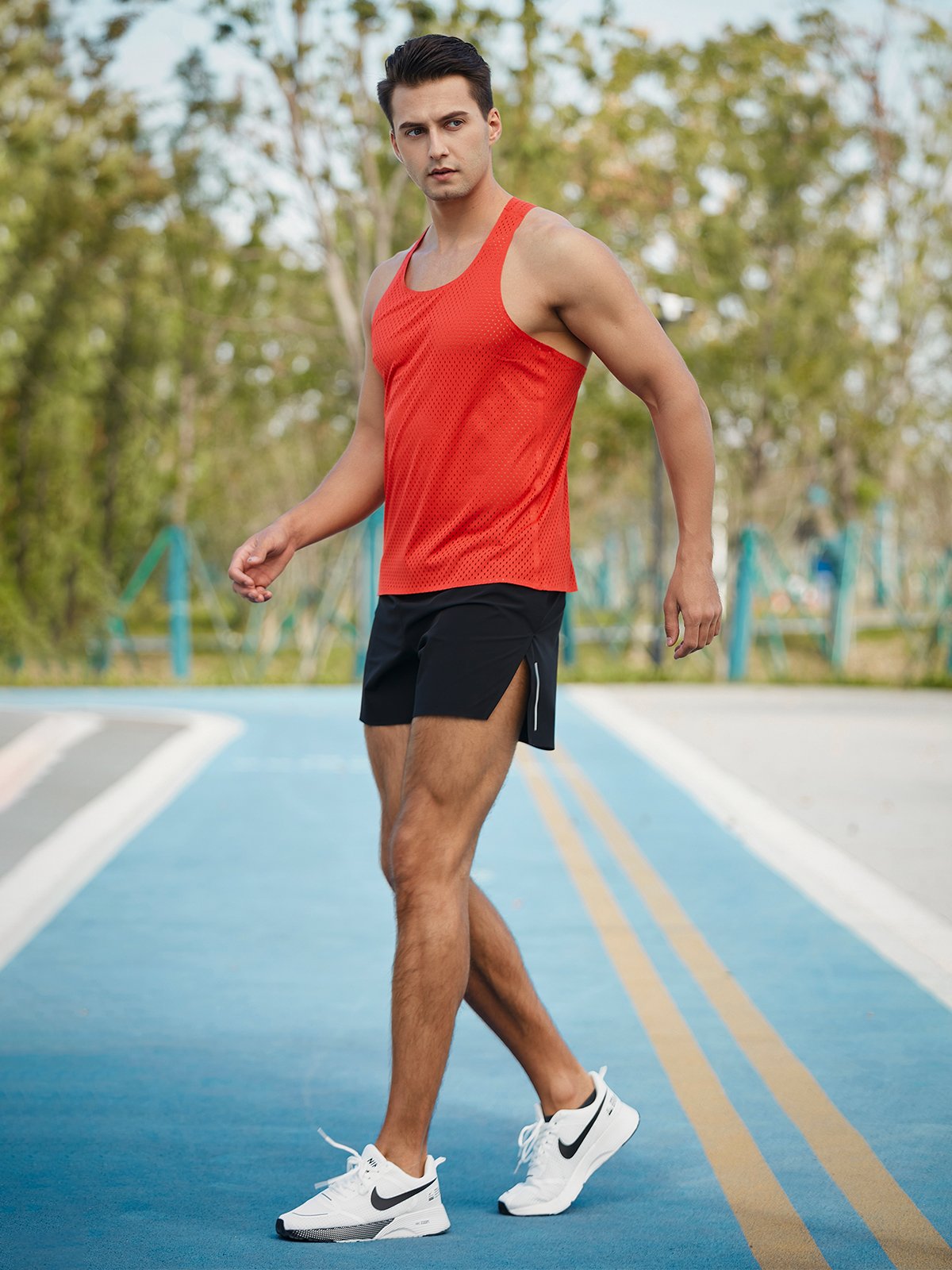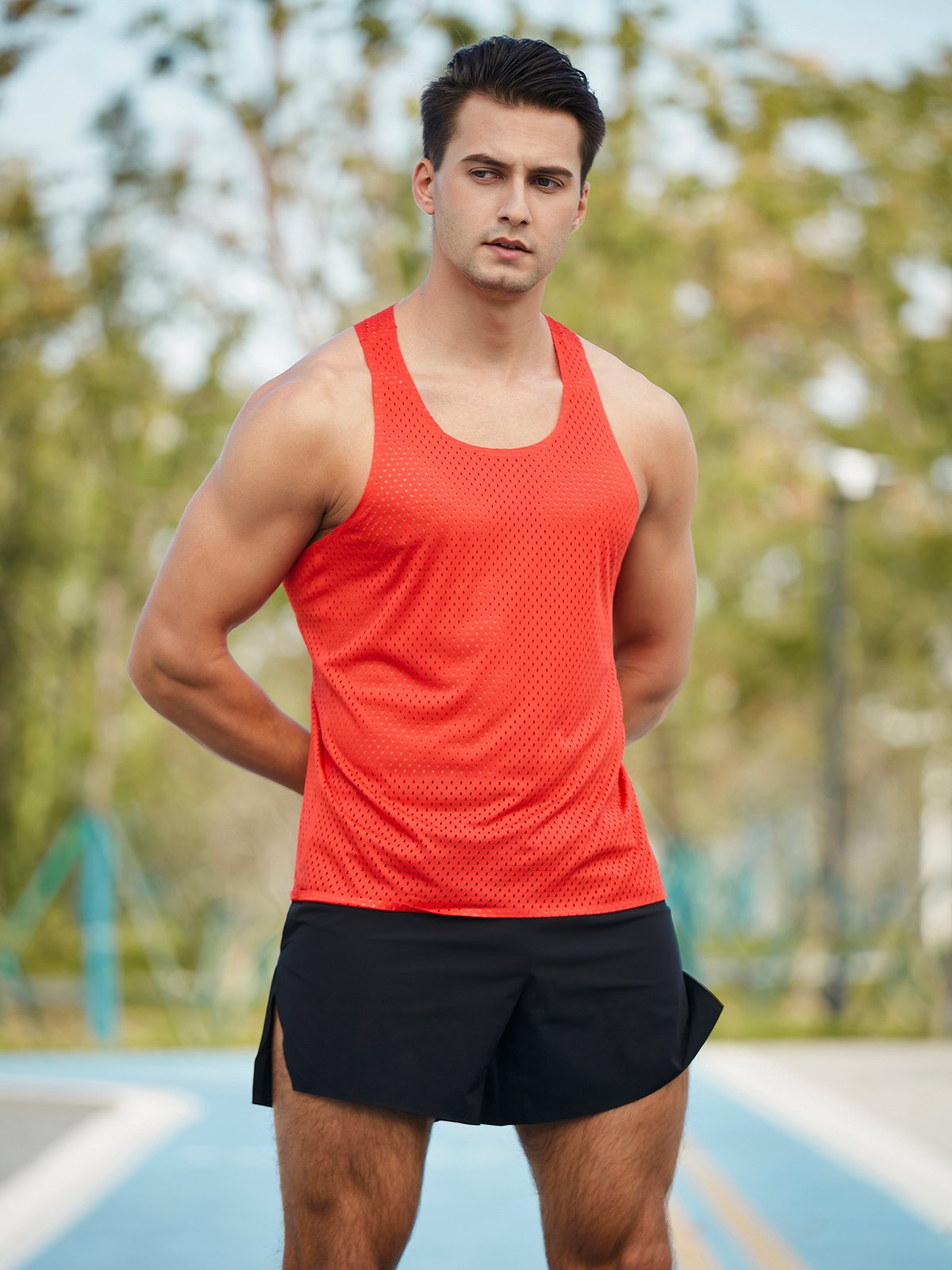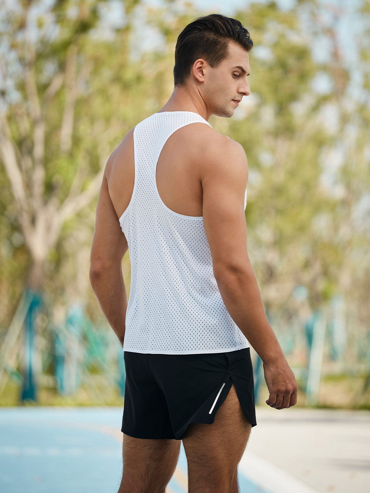 • Camiseta de malla ergonómica con cuello en O y espalda en Y para un ajuste holgado y cómodo