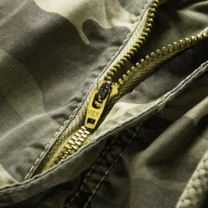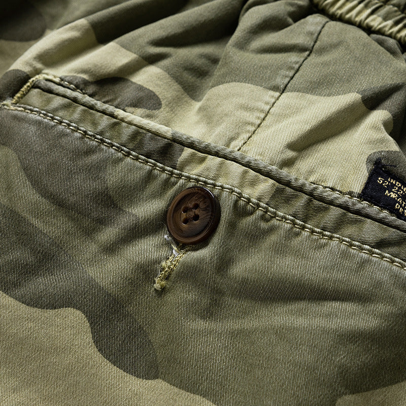 - Detalle: Bolsillos cargo laterales y estampado camuflaje