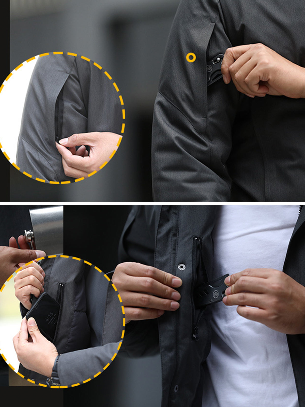 - Las juntas internas de los puños sellan eficazmente el calor, impidiendo que el aire frío penetre en la chaqueta y mejorando el aislamiento general