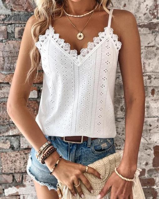 Descubre el verano con elegancia: ¡el top de encaje con cuello en V Emily!