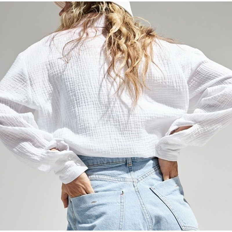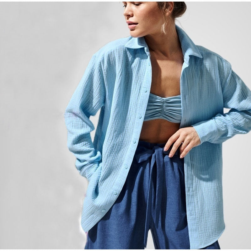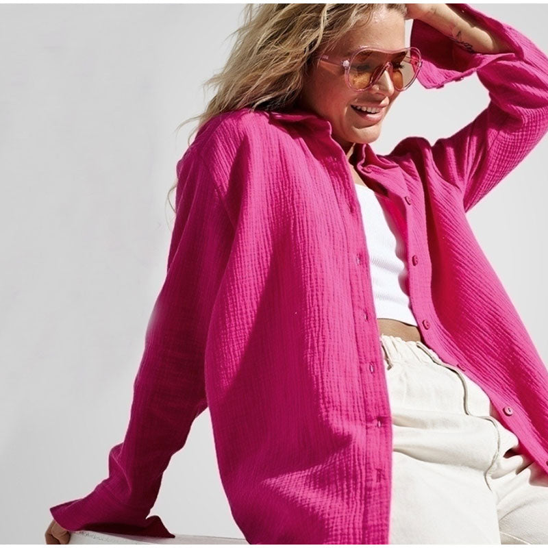 La manga larga agrega un toque de sofisticación y te brinda opciones de vestimenta para climas más frescos. Combínala con pantalones, faldas o jeans para crear looks casuales o más formales. Con esta blusa lisa, podrás lucir elegante y sentirte cómoda sin importar la ocasión.