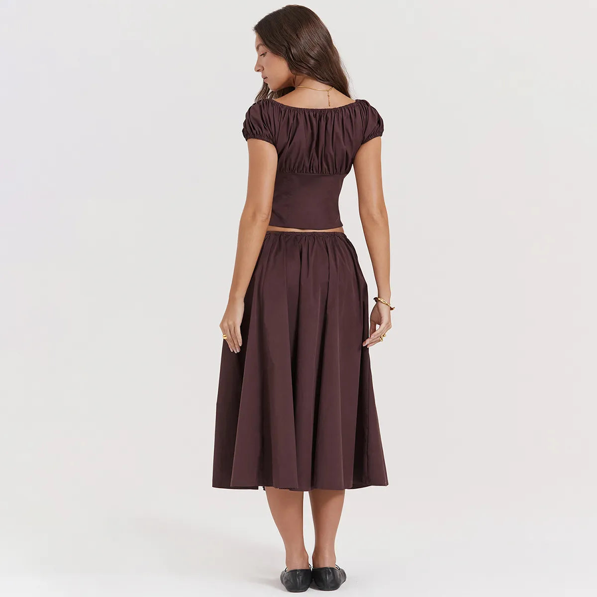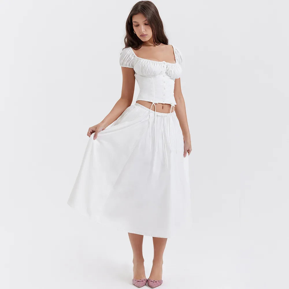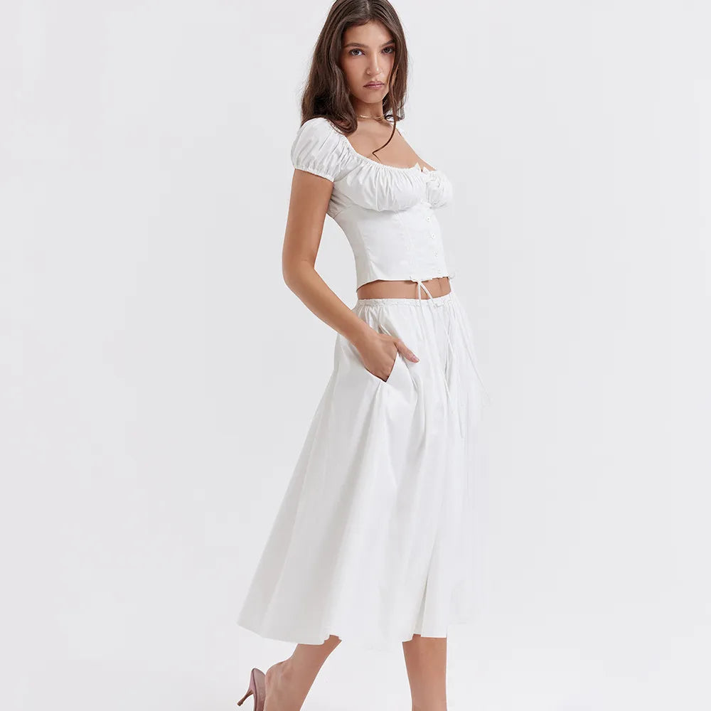 Tania - Conjunto de top y falda de manga abullonada y cuello cuadrado
