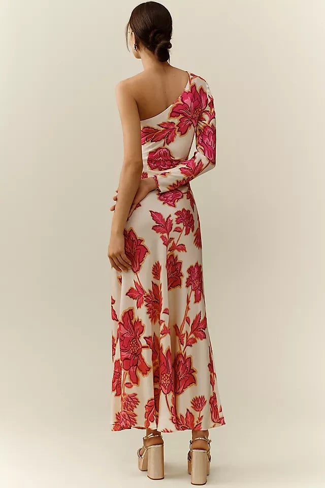 Valentina - Vestido Largo Floral de Un Solo Hombro