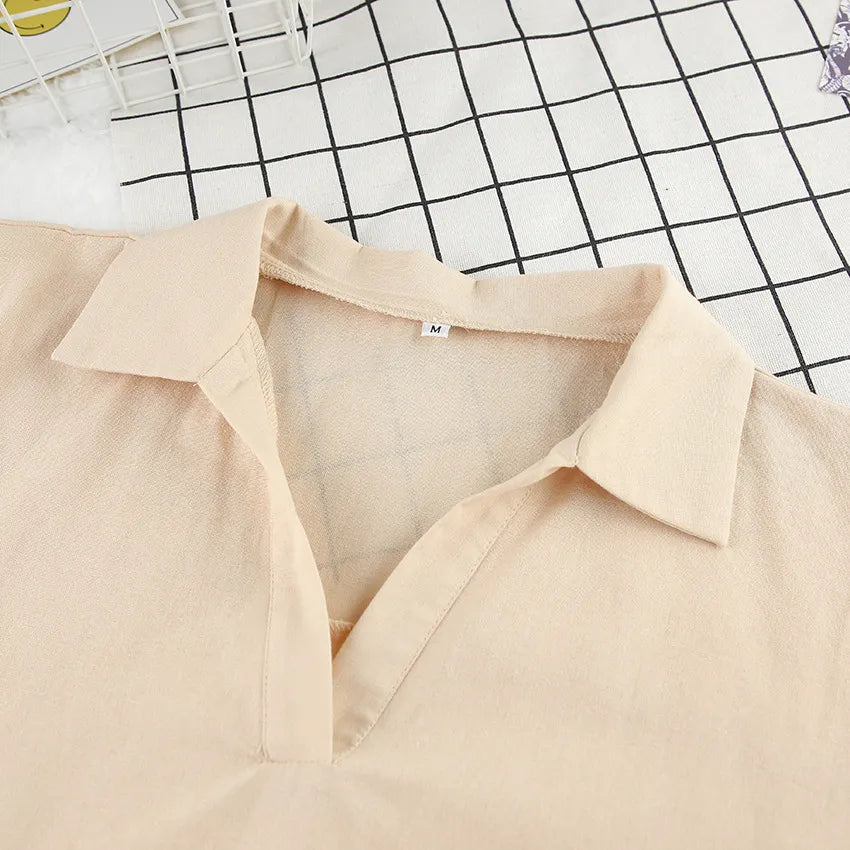 Velia - Conjunto de top de manga corta con cuello de pico y pantalón de cintura alta