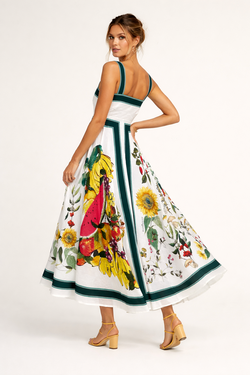 Se adapta bien en la zona del busto, la falda amplia permite moverte con comodidad, la tela se siente ligera durante el día y funciona muy bien para vacaciones, reuniones, comidas al aire libre o celebraciones donde quieres verte bonita y cómoda.