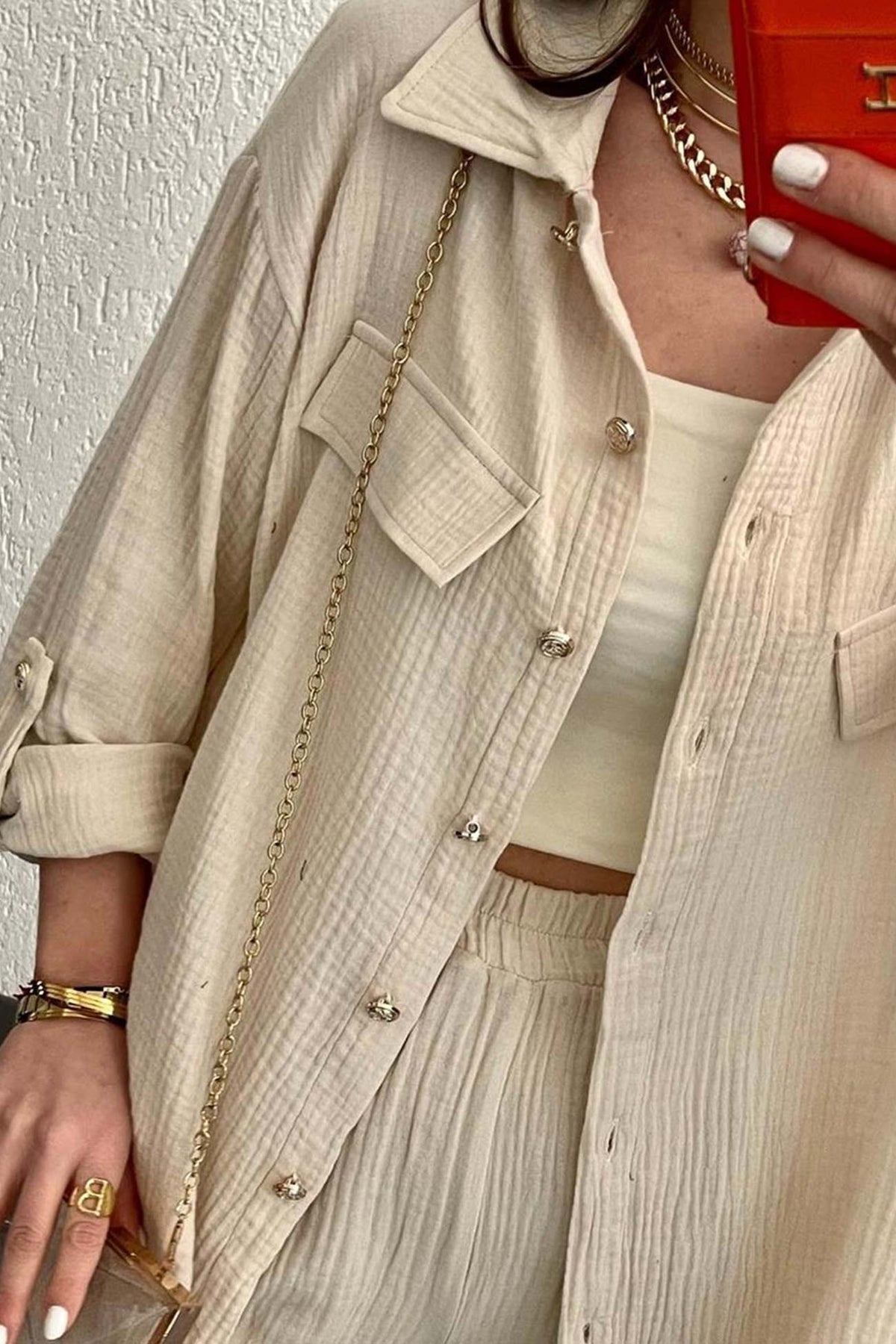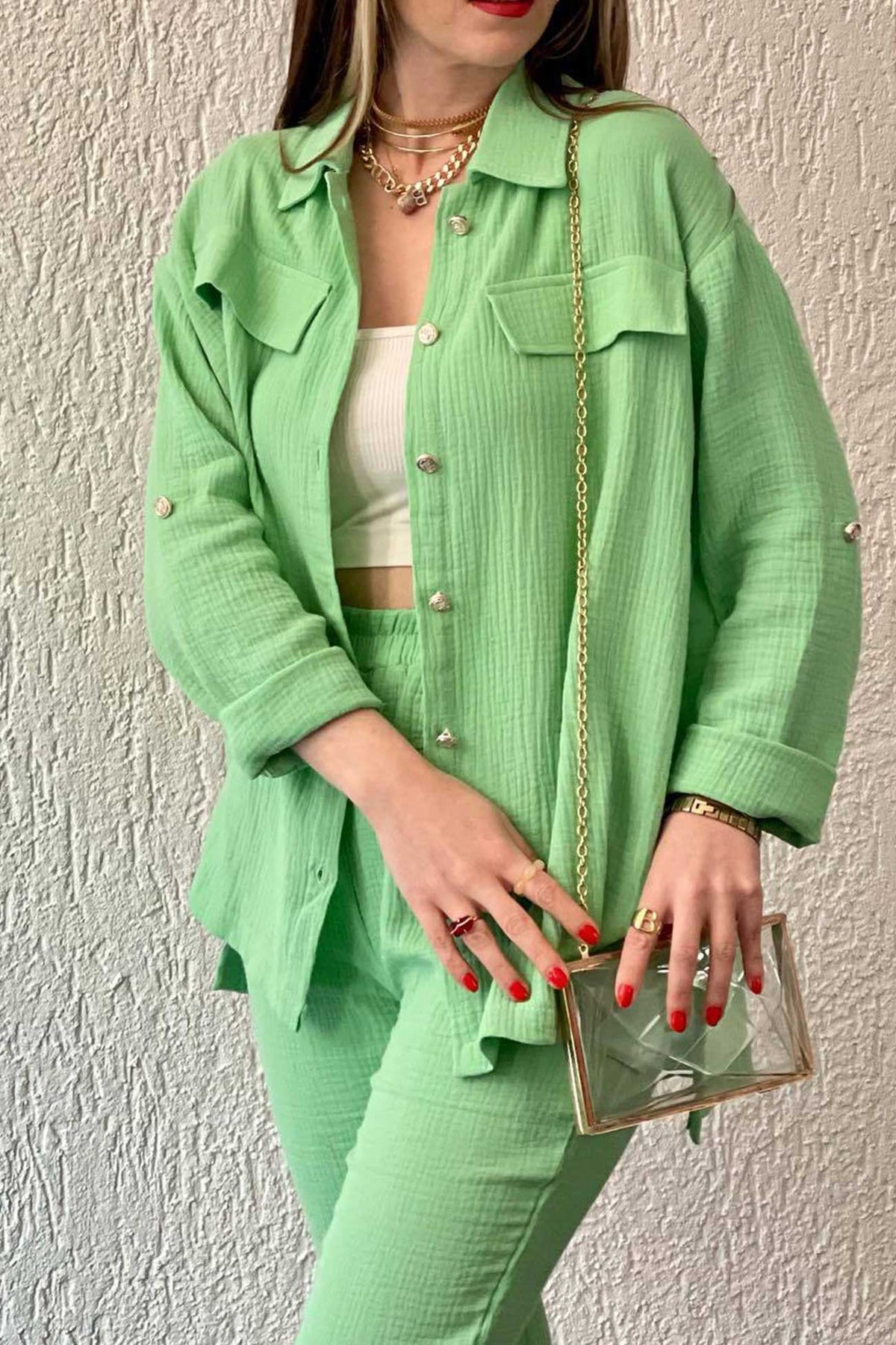 Esta prenda combina un corte regular que se adapta a la mayoría de las siluetas y ofrece opciones de ajuste adicionales al aumentar la talla para obtener un estilo más relajado. Con su diseño de manga larga, bolsillos funcionales y cierre con botones, brinda comodidad y practicidad en cada uso.