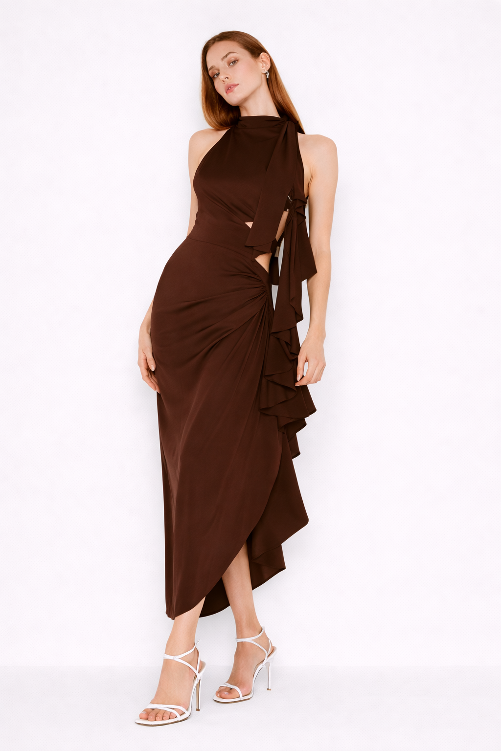 Descubre nuestro maxi vestido para mujer, una pieza esencial que combina comodidad y elegancia. Diseñado con un escote halter que realza la figura, este vestido ajustado se adapta perfectamente a tu silueta, brindando un estilo chic para cualquier ocasión.