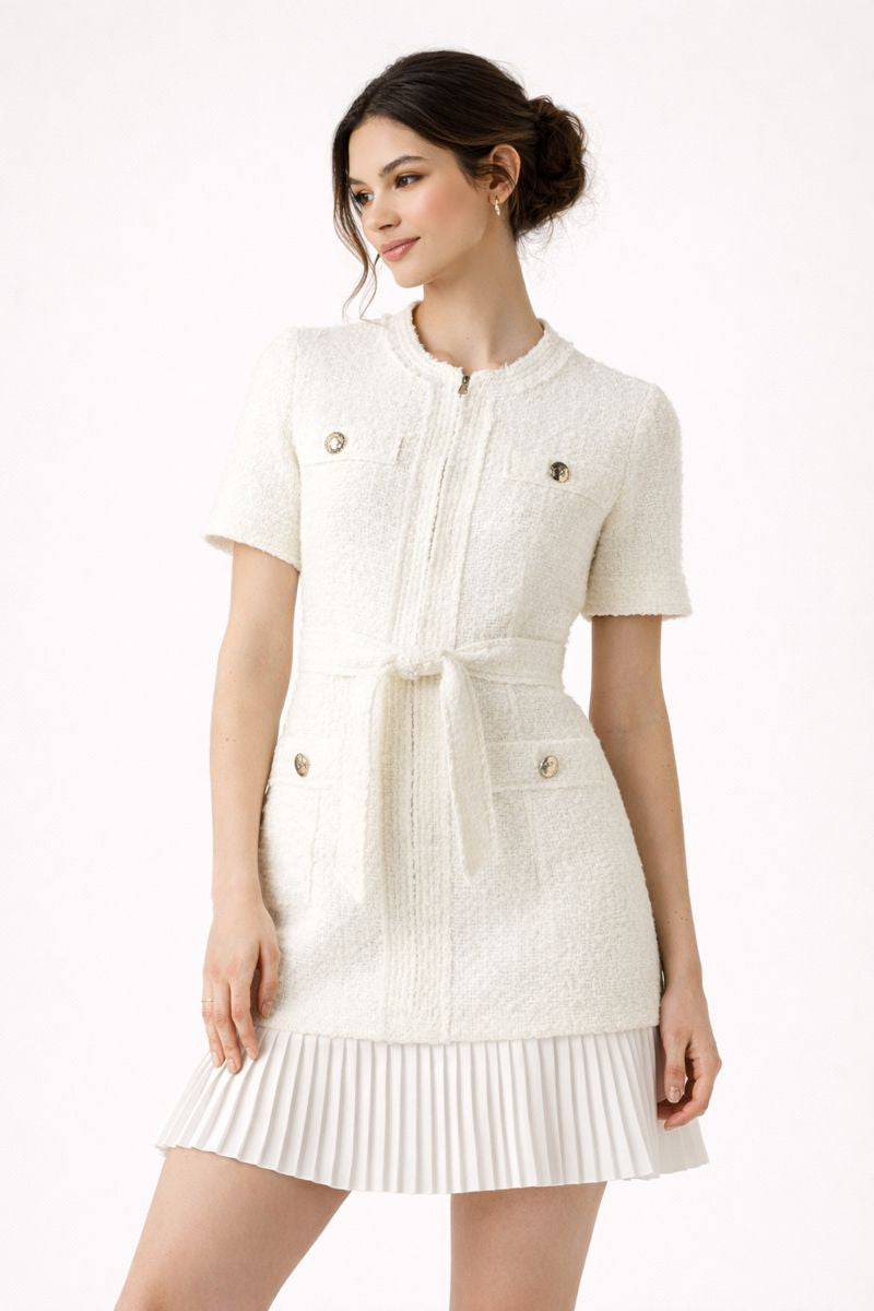 Vestido corto de tweed con cinturón para mujer - Anaís