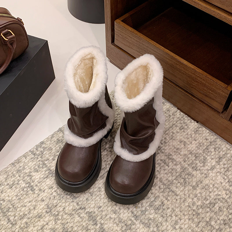 Estas botas de invierno para mujer están diseñadas para ofrecer abrigo y estilo en los días más fríos. Su diseño de caña media con acabado suave y detalles acolchados aporta una sensación cálida y confortable, ideal para mantener los pies protegidos del frío. La estructura robusta proporciona estabilidad y comodidad en cada paso.