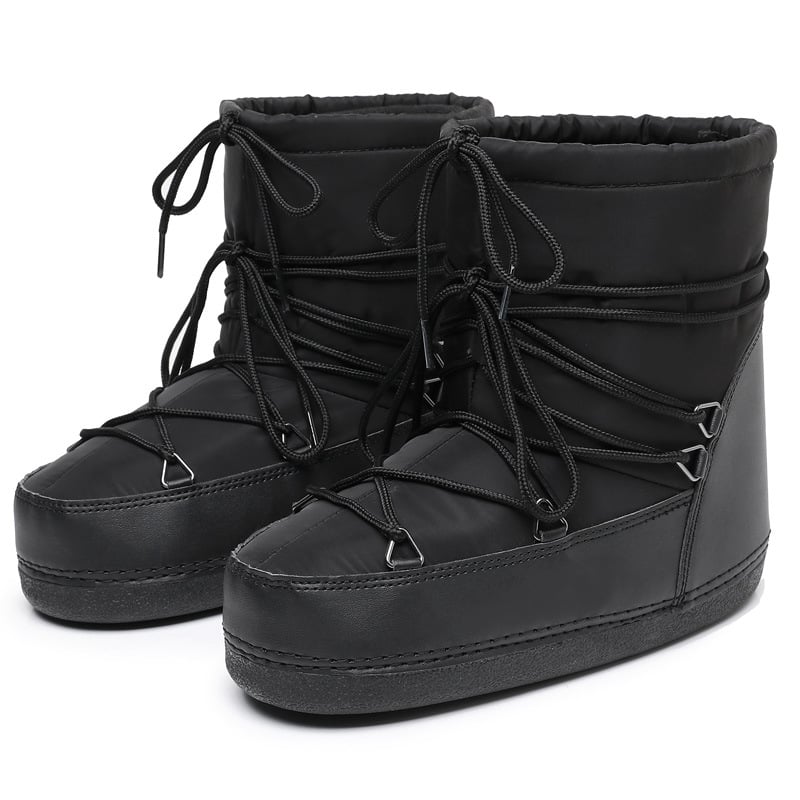 Estas botas de nieve para mujer cuentan con una estructura acolchada de caña media diseñada para aislar el pie en entornos fríos y húmedos. La superficie impermeable protege de la humedad exterior, mientras el sistema de cordones rodea el empeine aportando ajuste y sujeción. La base gruesa crea una separación eficaz del suelo, favoreciendo estabilidad y aislamiento térmico.