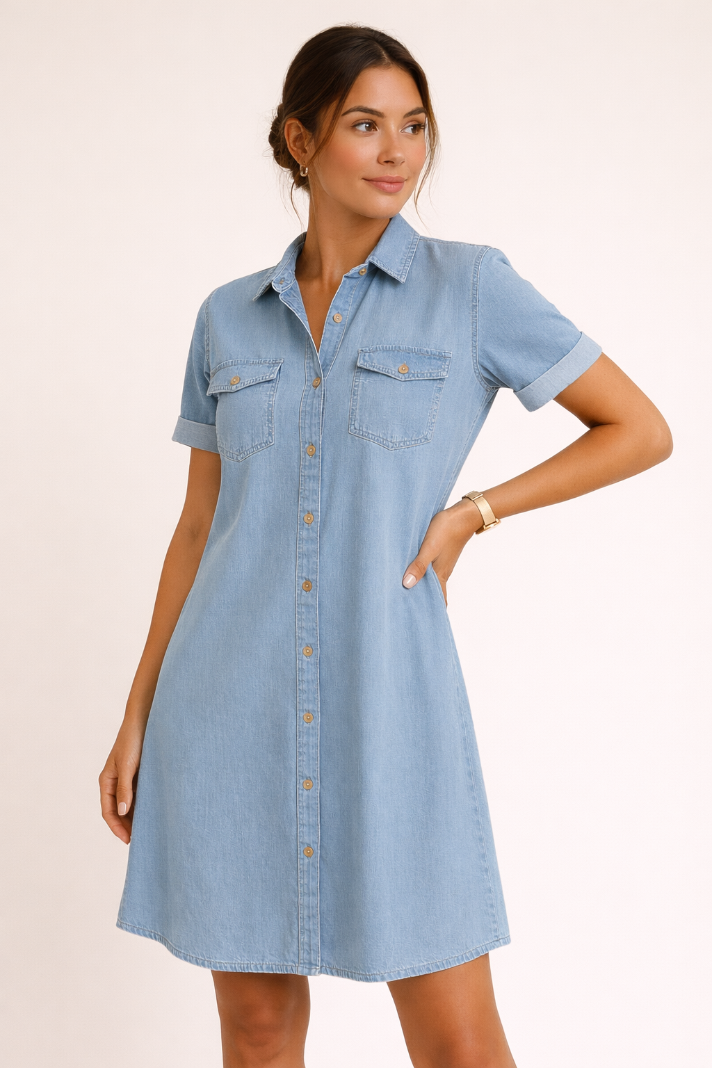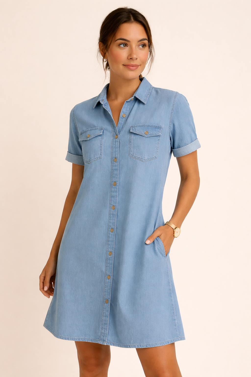 Vestido camisero denim de ajuste cómodo para mujer - Claire