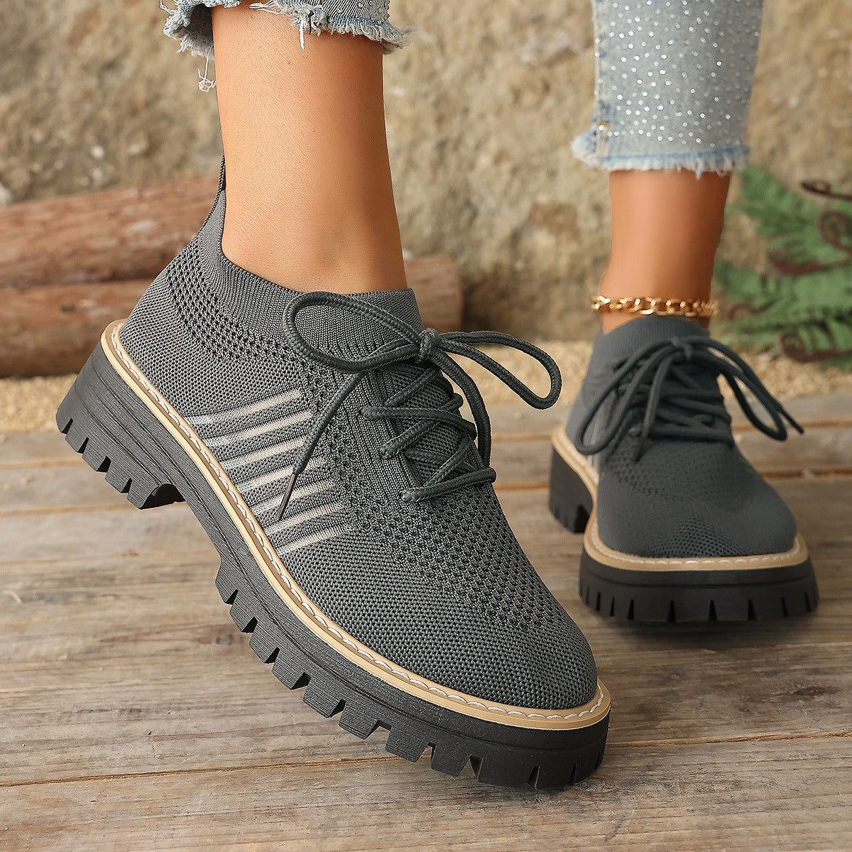 Esta zapatilla para mujer se presenta como un calzado de perfil bajo, pensado para el uso cotidiano y construido a partir de una estructura cerrada. La superficie muestra un tejido de punto continuo, con zonas de trama diferenciada que definen el empeine y los laterales.