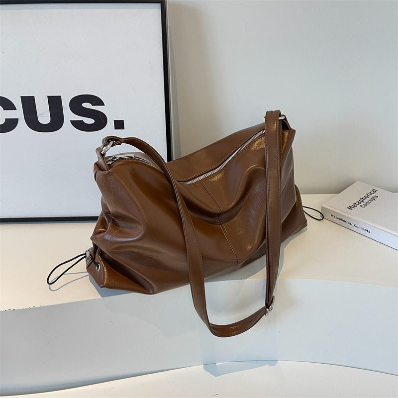 Diseñado para mujeres que buscan estilo con naturalidad, este bolso bandolera de efecto piel es la combinación perfecta entre suavidad, flexibilidad y elegancia contemporánea. Su estructura fluida aporta una silueta relajada y moderna, mientras que el acabado liso con costuras marcadas añade un toque sofisticado.
