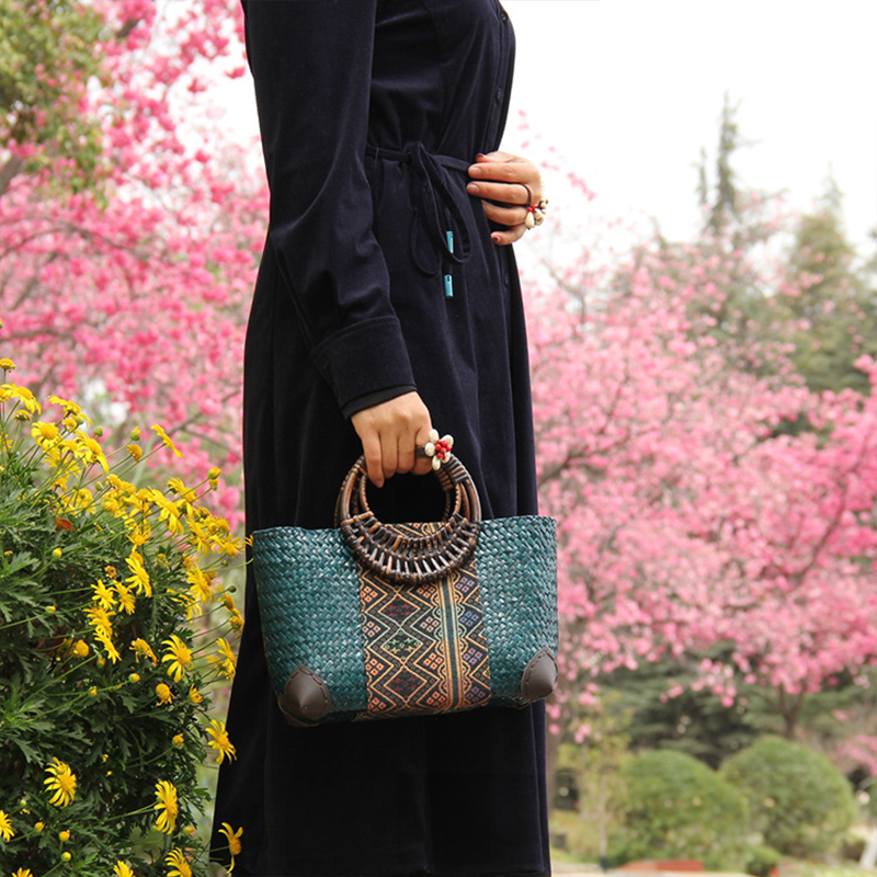 - Tejido a mano con ratán paja y algodón orgánico respetuoso con el medio ambiente