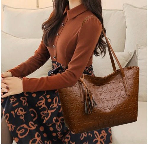 Eleva tu estilo con este accesorio imprescindible. Haz tu pedido ahora y añade un toque de carácter a tu armario con nuestro bolso de gran capacidad con estampado de calavera.