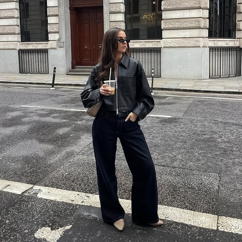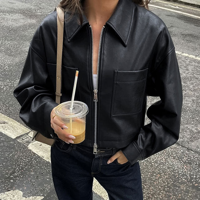Esta chaqueta biker redefine el estilo urbano con un corte corto y detalles minimalistas. Su acabado mate aporta un aire moderno y versátil, ideal para acompañar desde looks casuales hasta conjuntos más sofisticados.