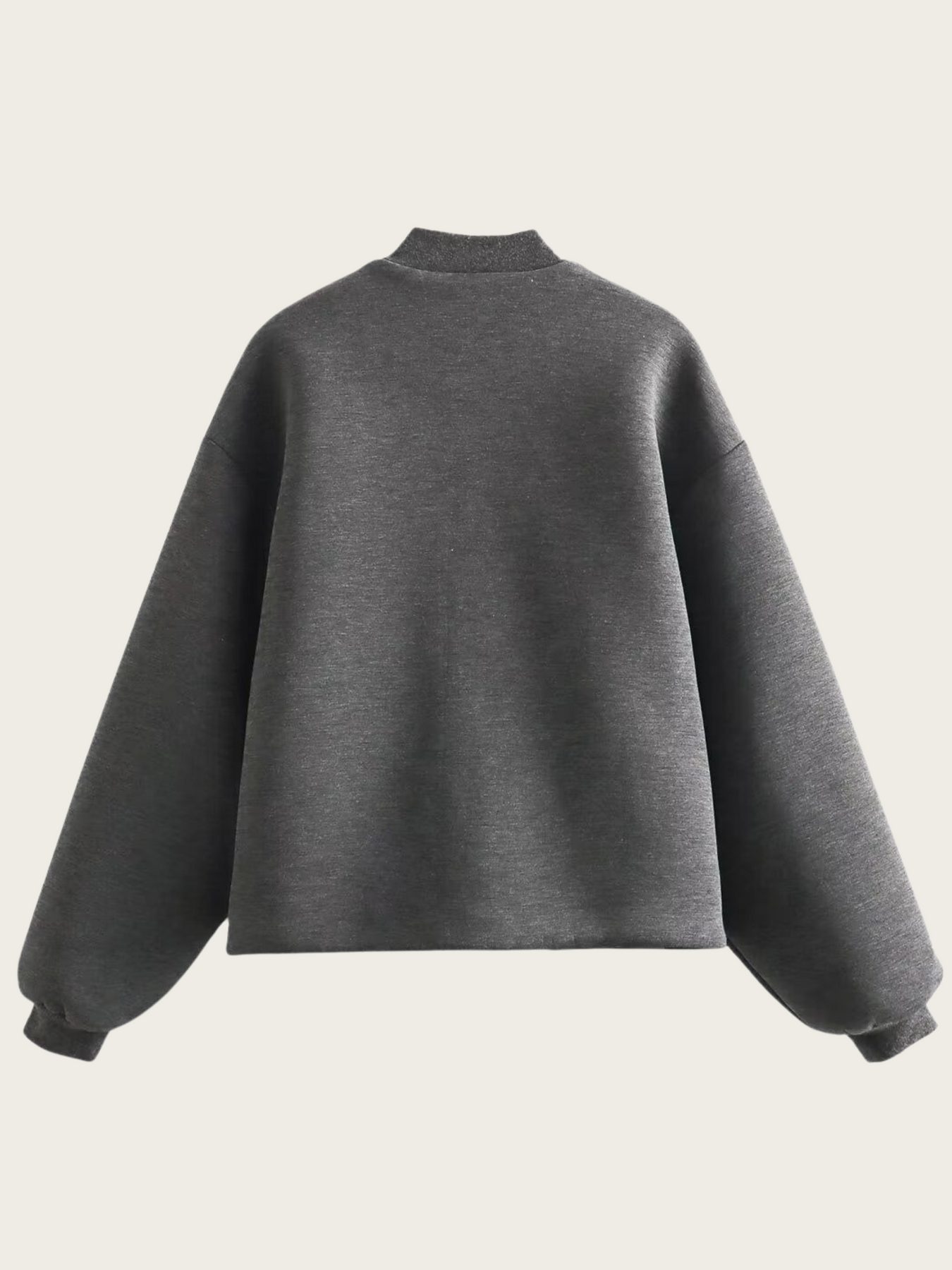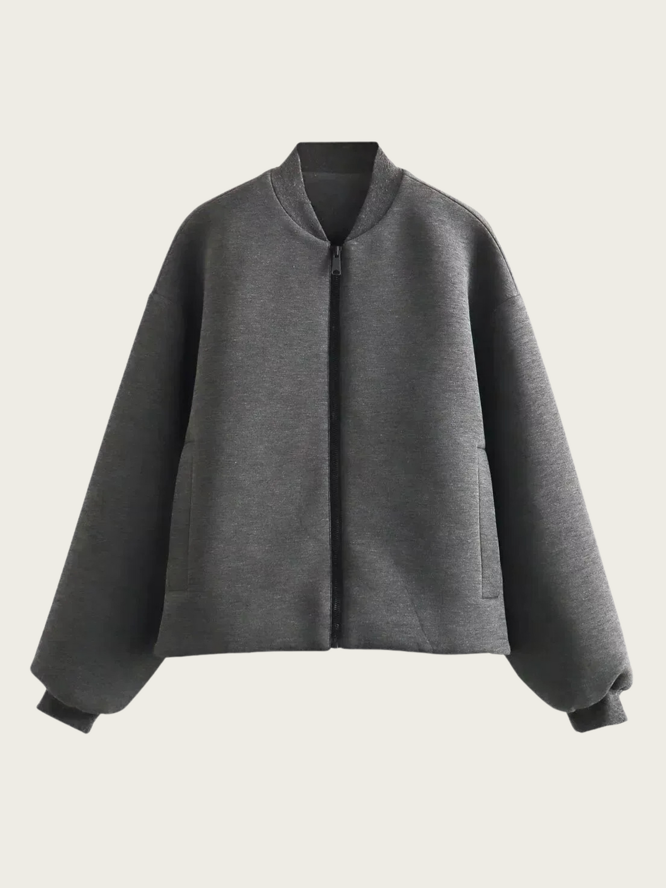 El cierre de cremallera central ofrece practicidad y versatilidad, mientras que el cuello redondeado y los puños ajustados refuerzan el estilo clásico de la prenda. Los bolsillos laterales integrados suman funcionalidad sin alterar la estética limpia y depurada.