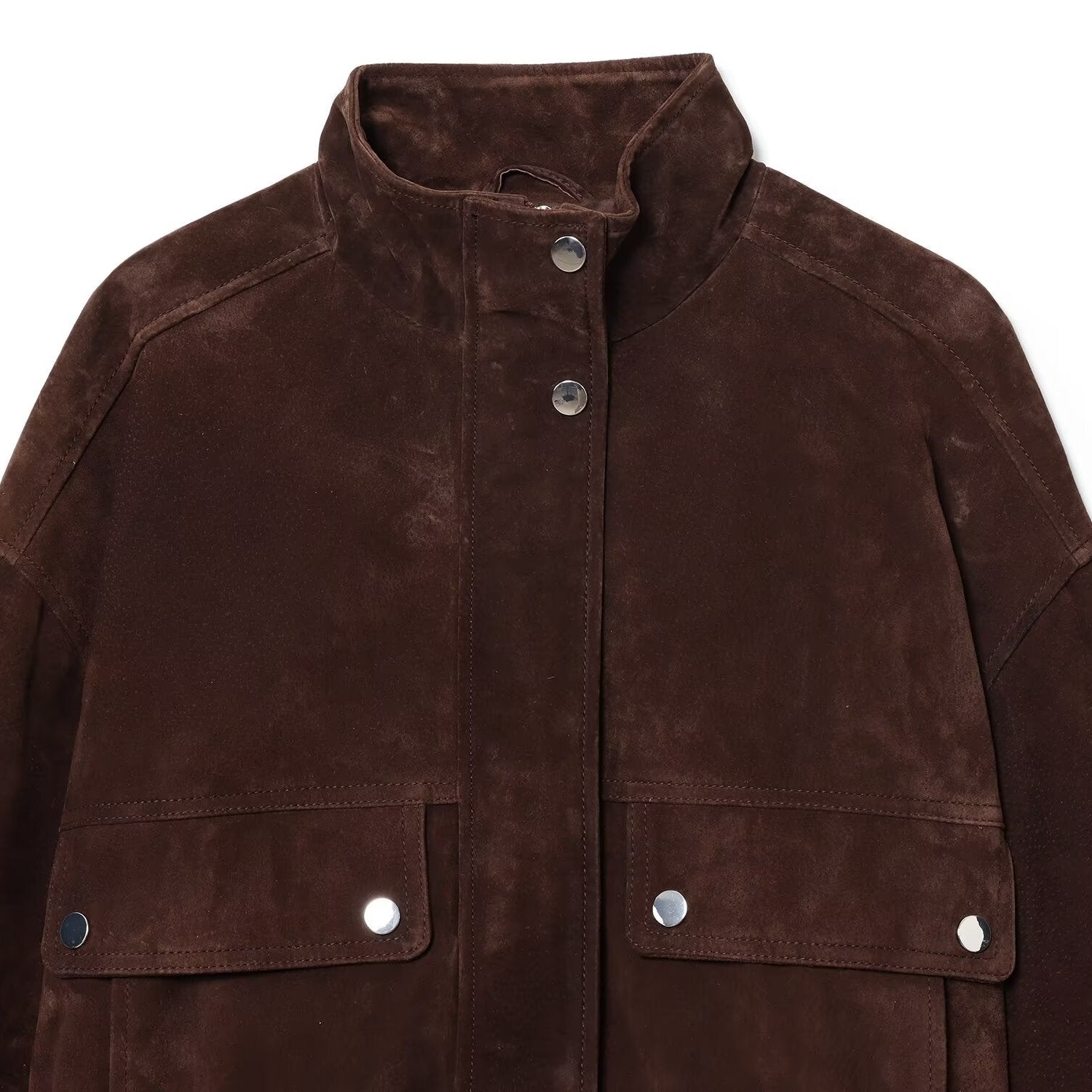 Chaqueta de ante con bolsillos frontales para mujer - Mireane