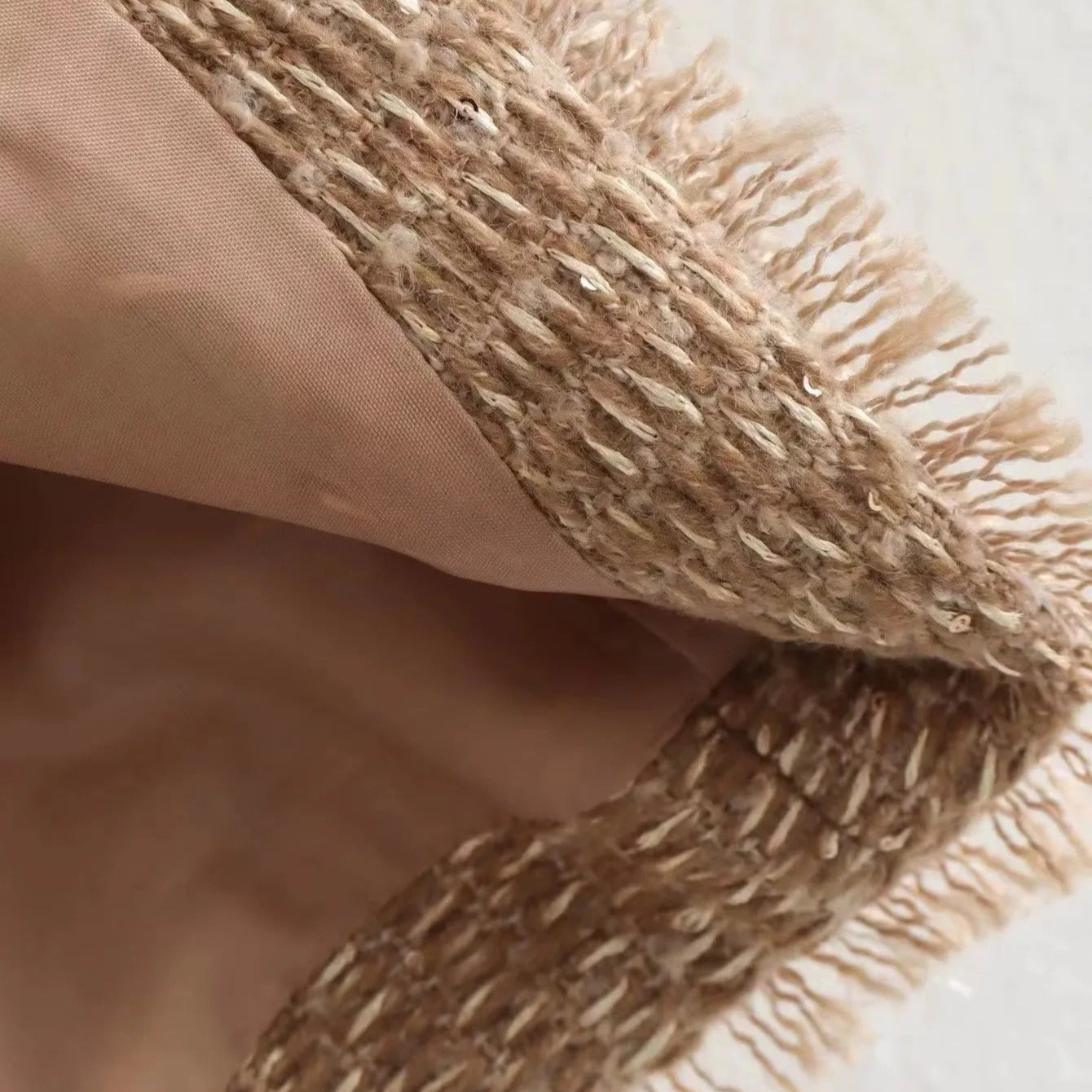 Chaqueta estructurada con tejido tipo tweed de textura marcada, ideal para conseguir un look elegante y actual. Su corte recto y ligeramente entallado resalta la silueta sin perder comodidad, mientras que los detalles deshilachados en el borde inferior añaden un toque artesanal y sofisticado.