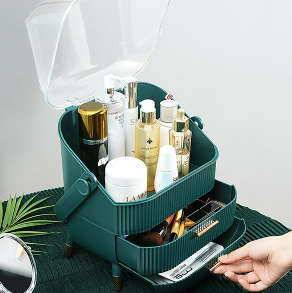 El "Estuche de Almacenaje Cosmético" es la solución perfecta para mantener tu maquillaje, cosméticos y artículos para el cuidado de la piel organizados y protegidos. Con una gran capacidad de almacenamiento, esta caja te permite guardar todos tus productos de belleza en un solo lugar, manteniéndolos al alcance de tu mano.