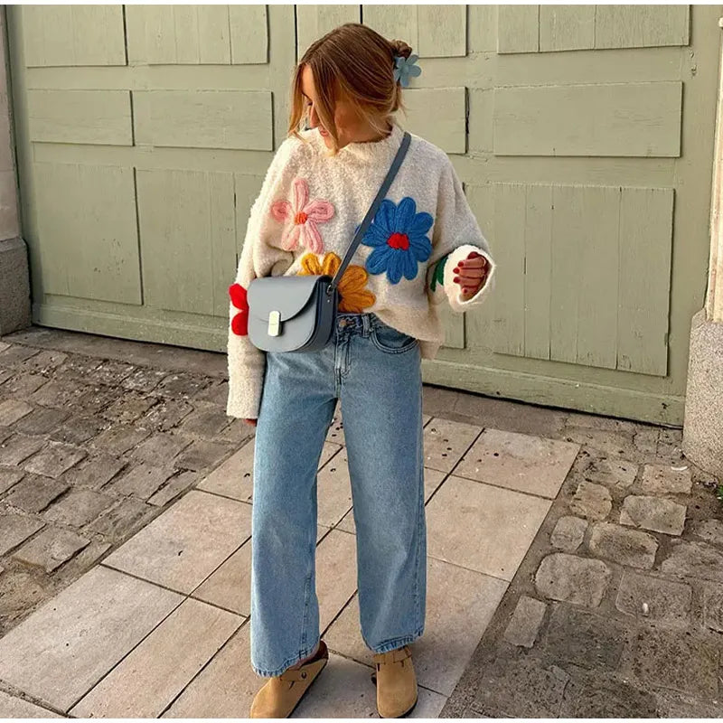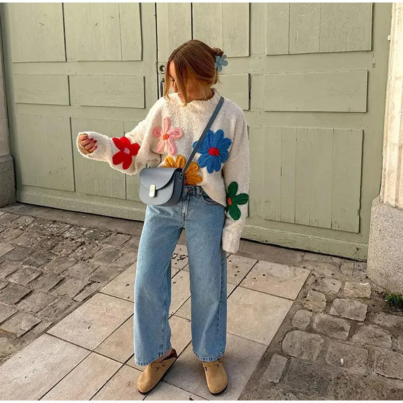 Farah - Jersey de punto grueso con llamativos apliques florales
