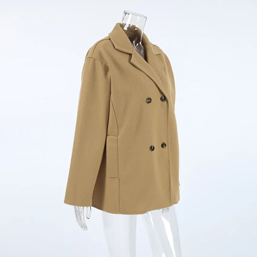 Gali Abrigo elegante de lana marrón de largo medio con doble botonadura