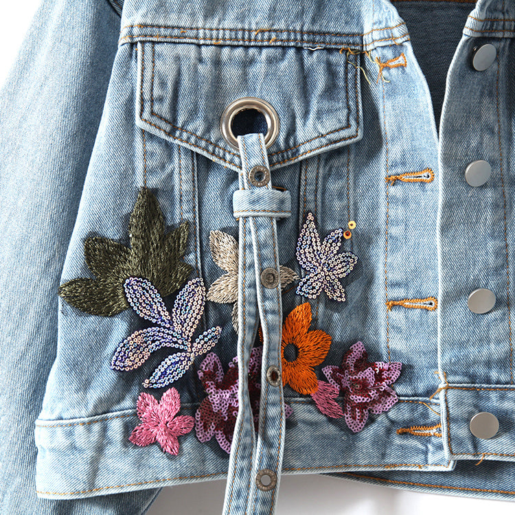 Julie - Chaqueta vaquera con bordado floral y lentejuelas