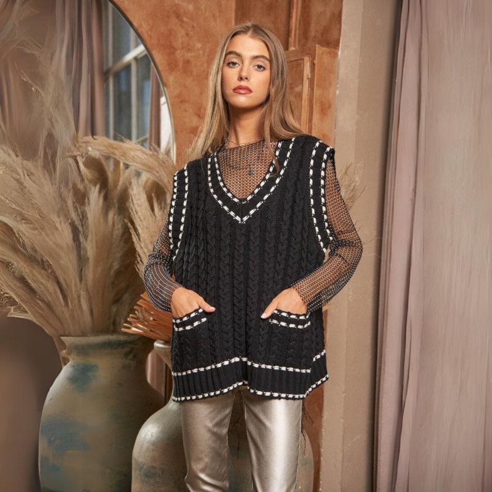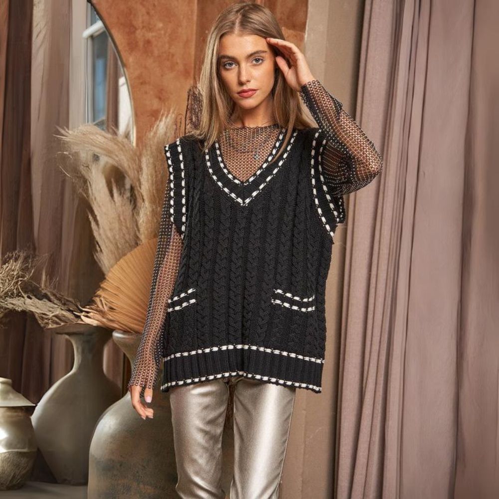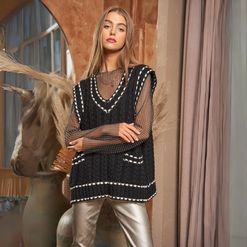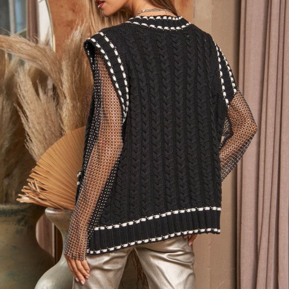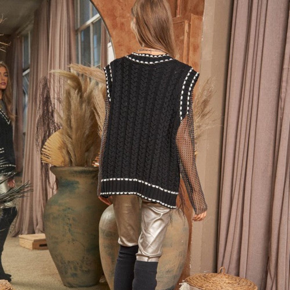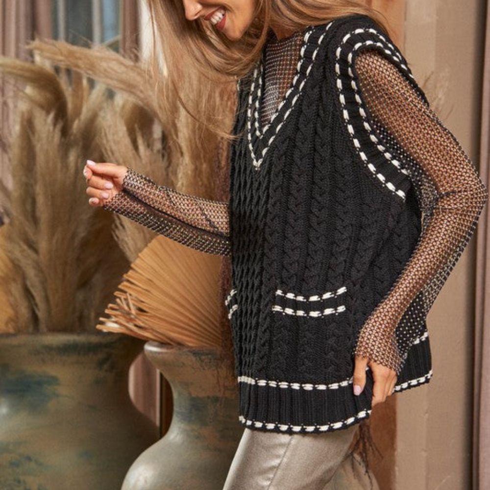 Lea - Chaleco de punto multicapa con tejido de malla y ribete en contraste