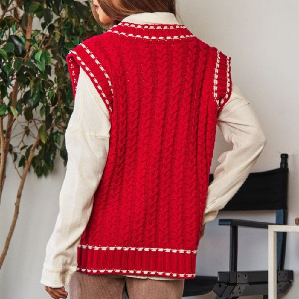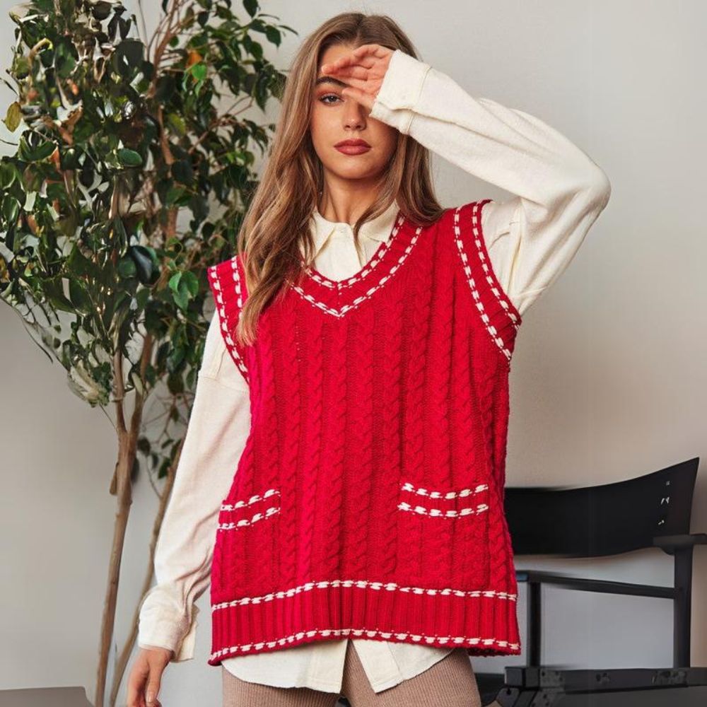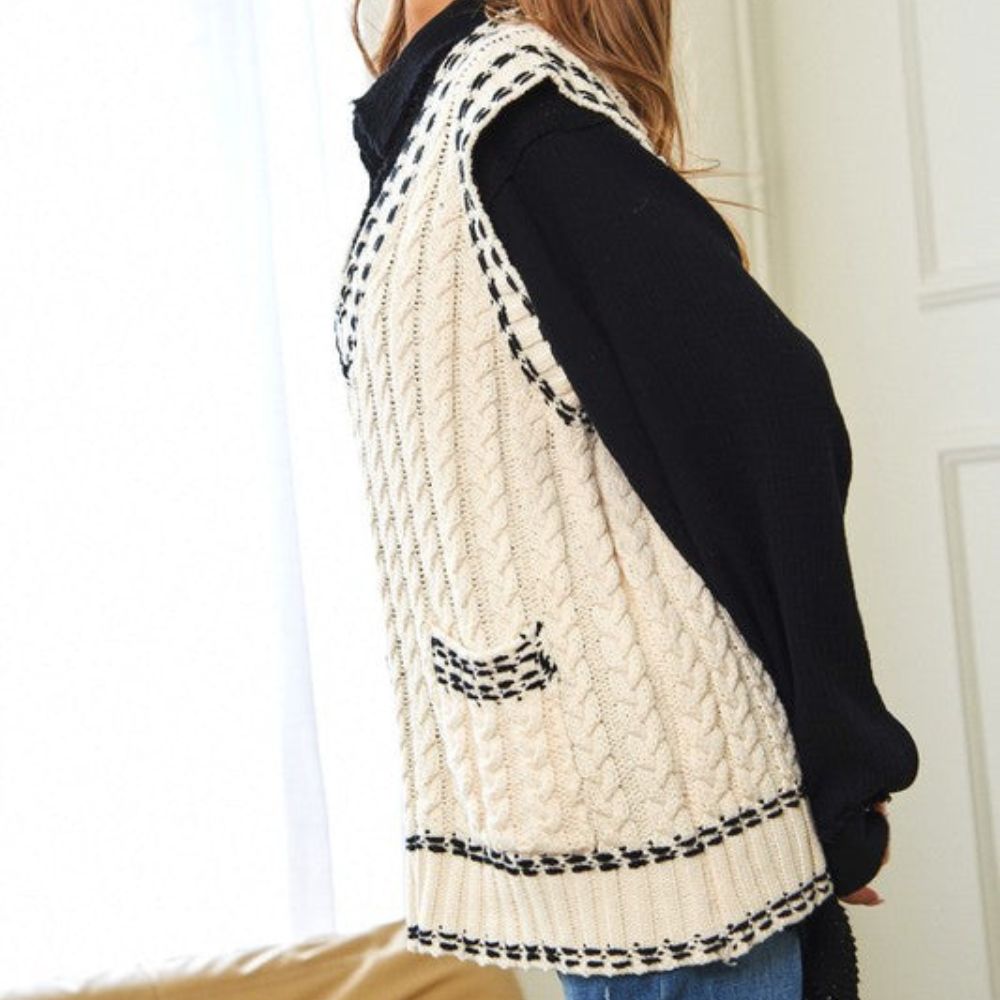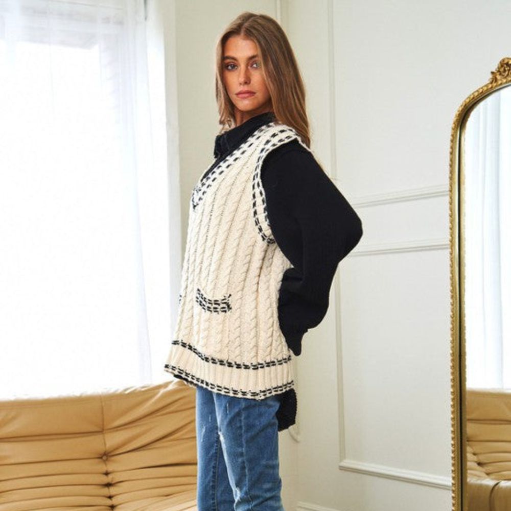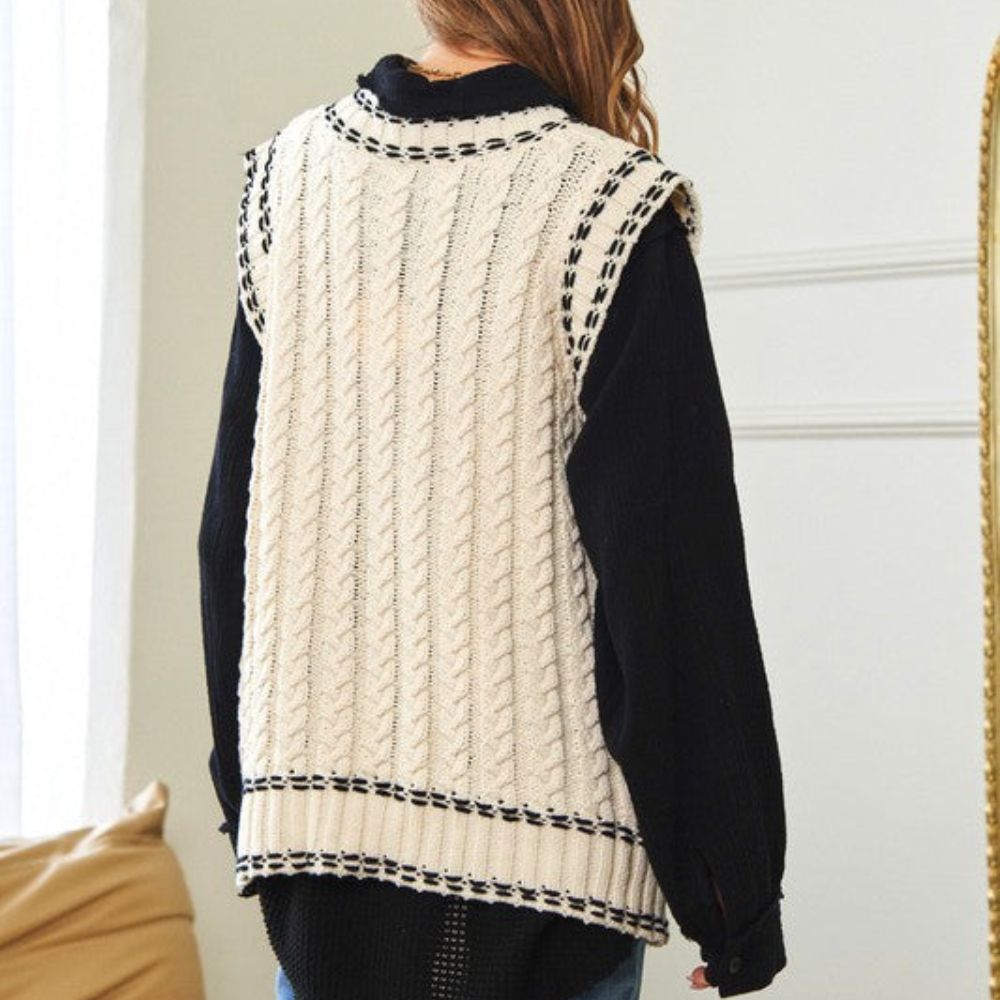 Lea - Chaleco de punto multicapa con tejido de malla y ribete en contraste