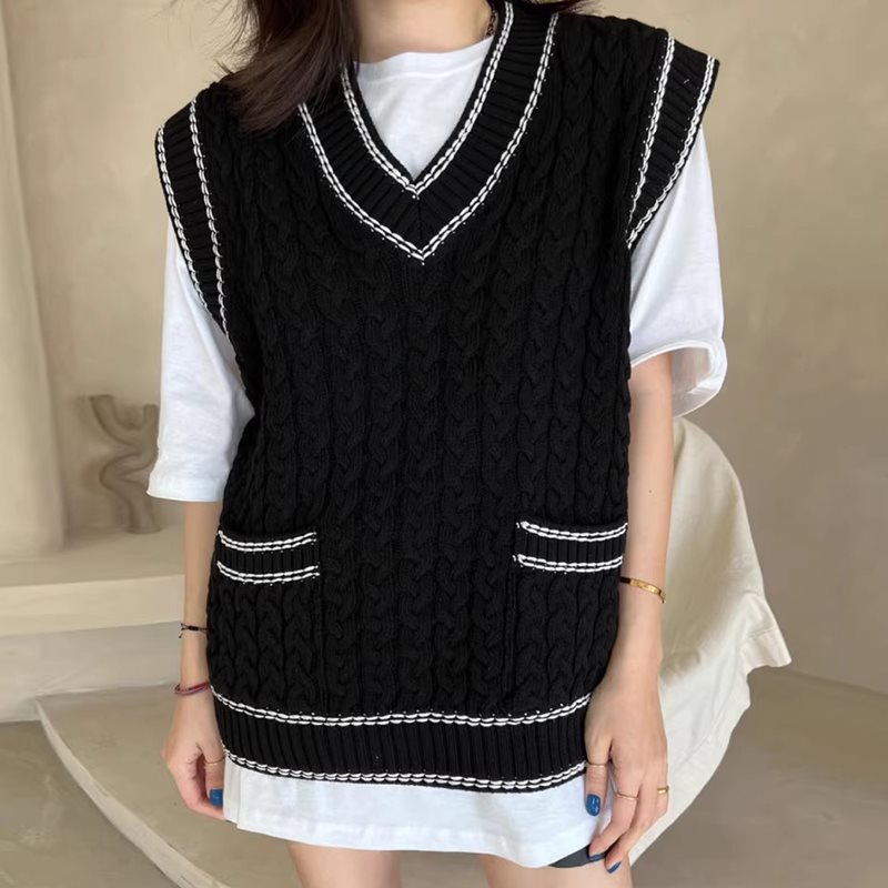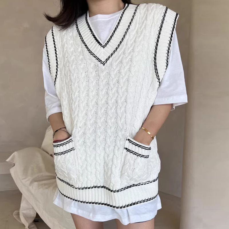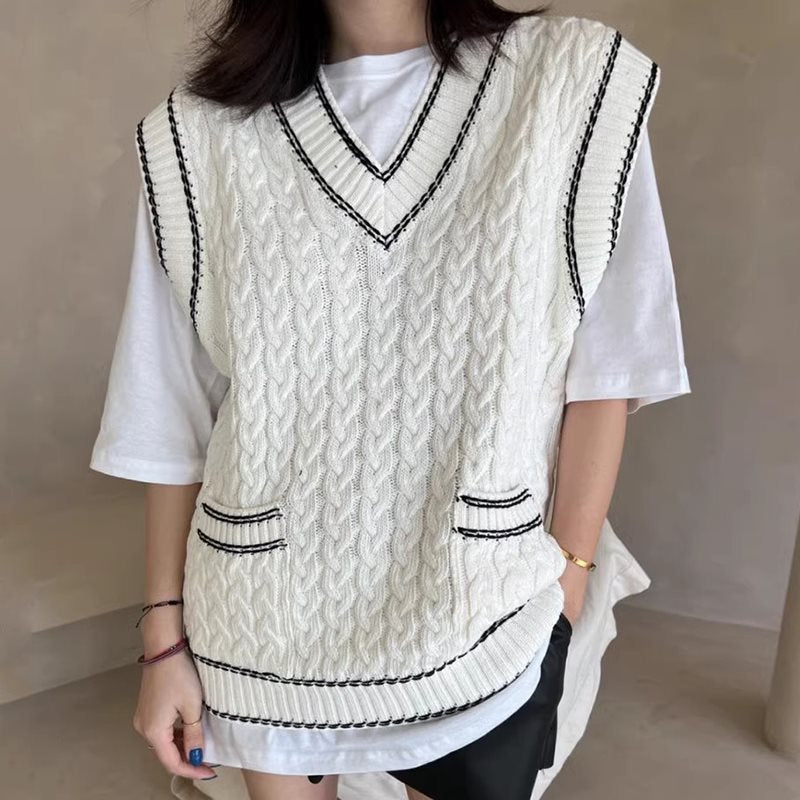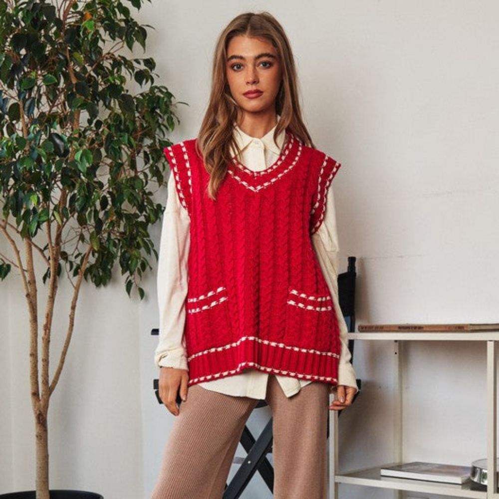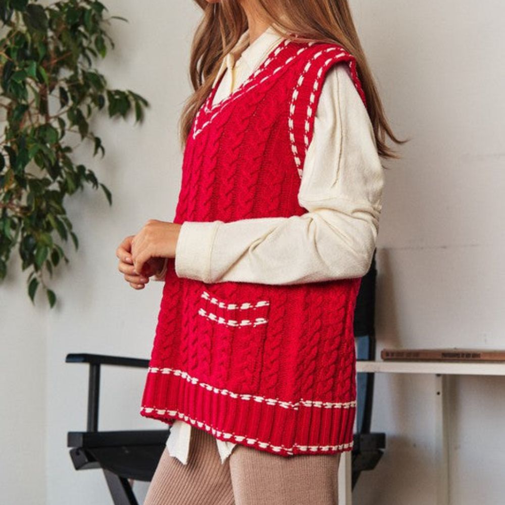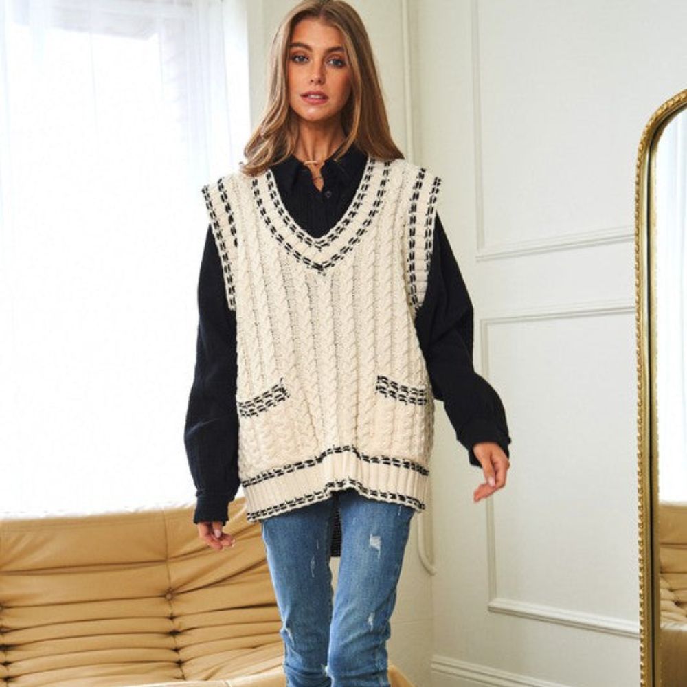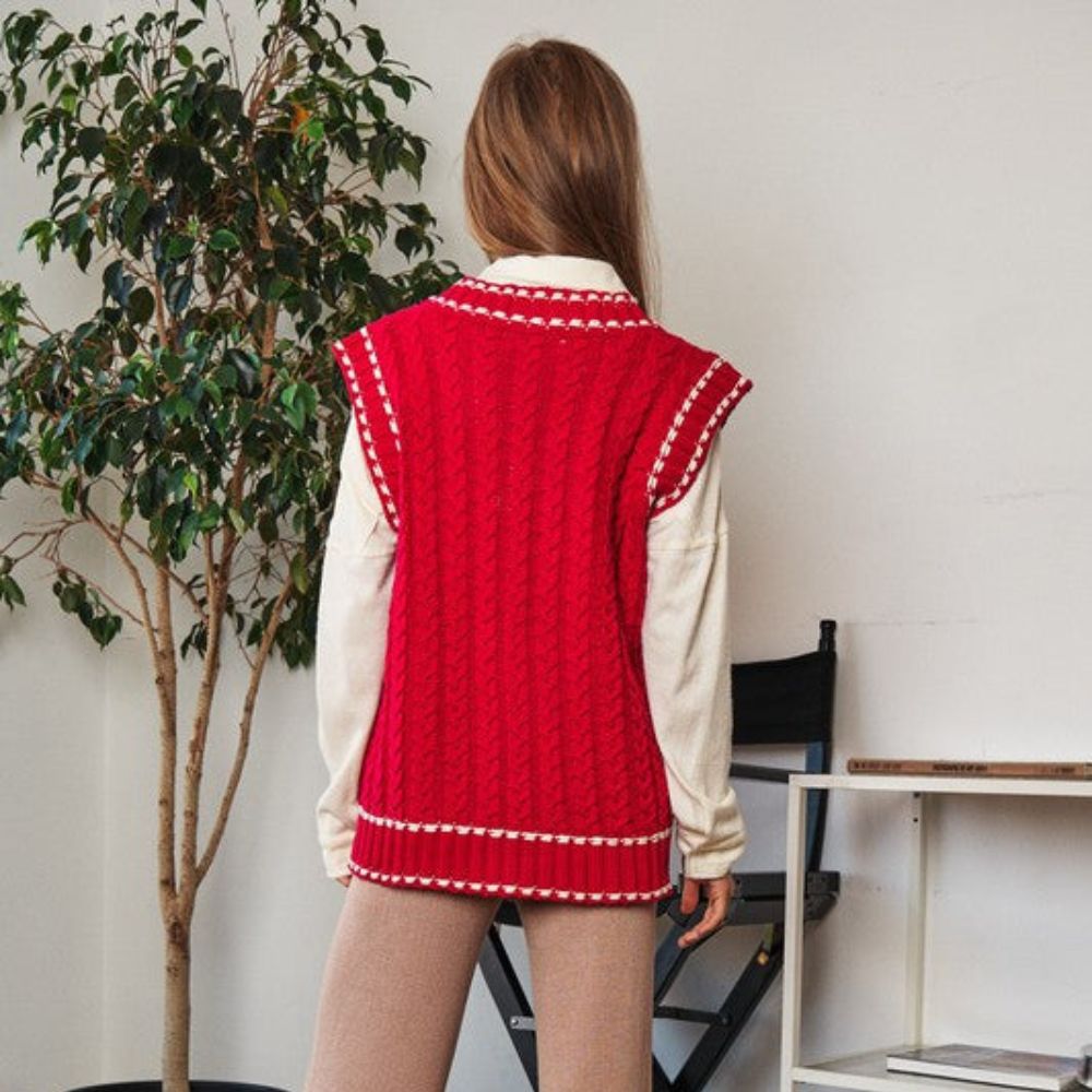 Lea - Chaleco de punto multicapa con tejido de malla y ribete en contraste