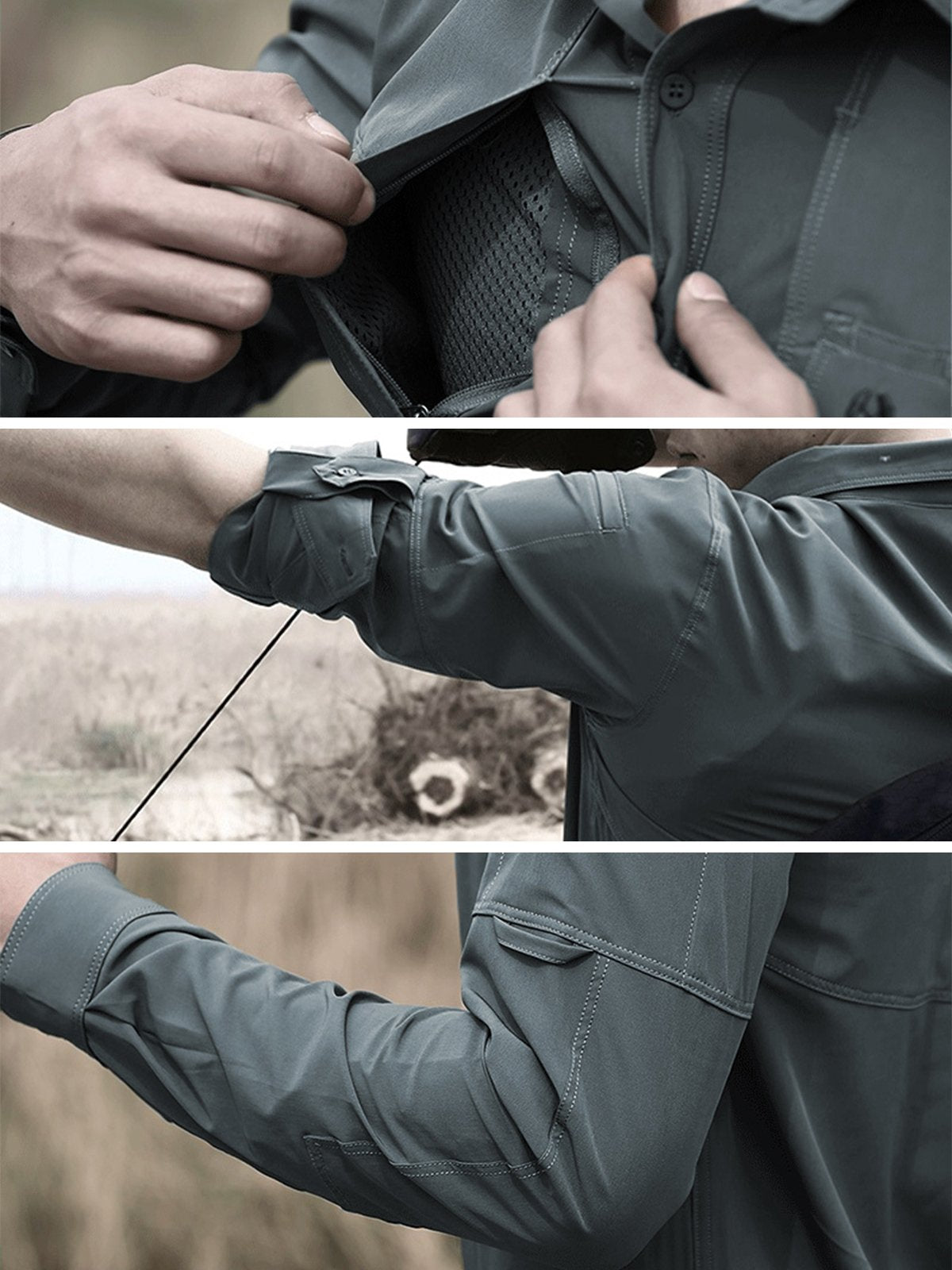 - Mangas ajustables con un bolsillo extra en el brazo