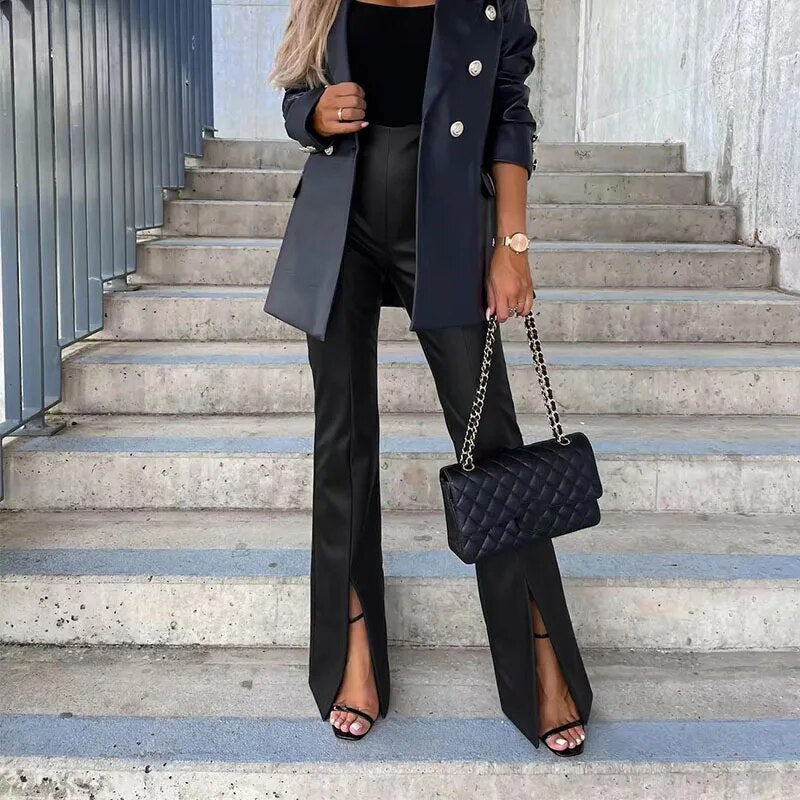 Lleva los pantalones de piel Merle con un blazer impecable para un look de oficina elegante o combínalos con un jersey holgado para un estilo casual elegante en tu tiempo libre. La versatilidad de estos pantalones los convierte en una parte esencial de tu armario.