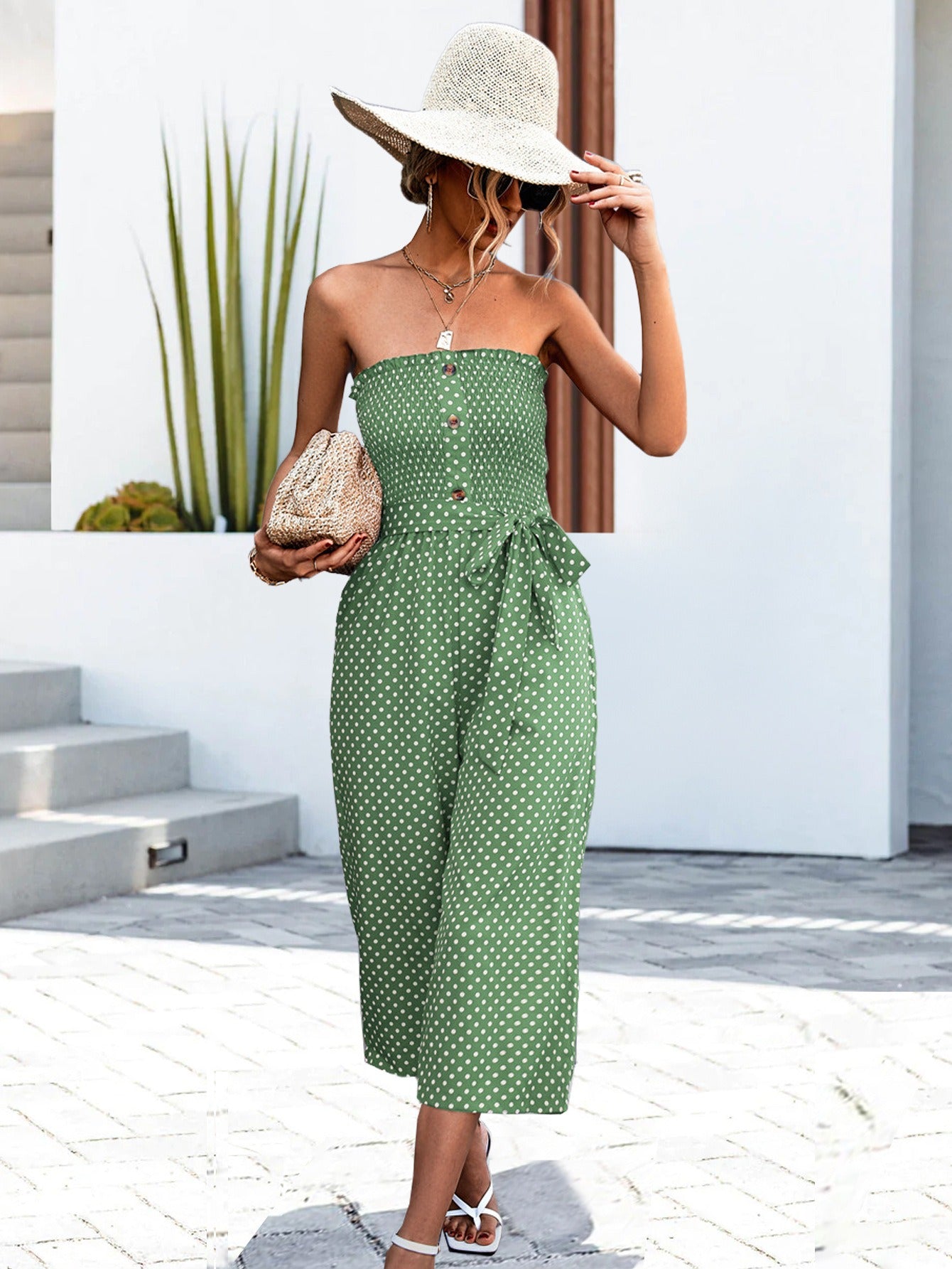 Mono largo para mujer con estampado de lunares sin tirantes estilo veraniego - Natalia