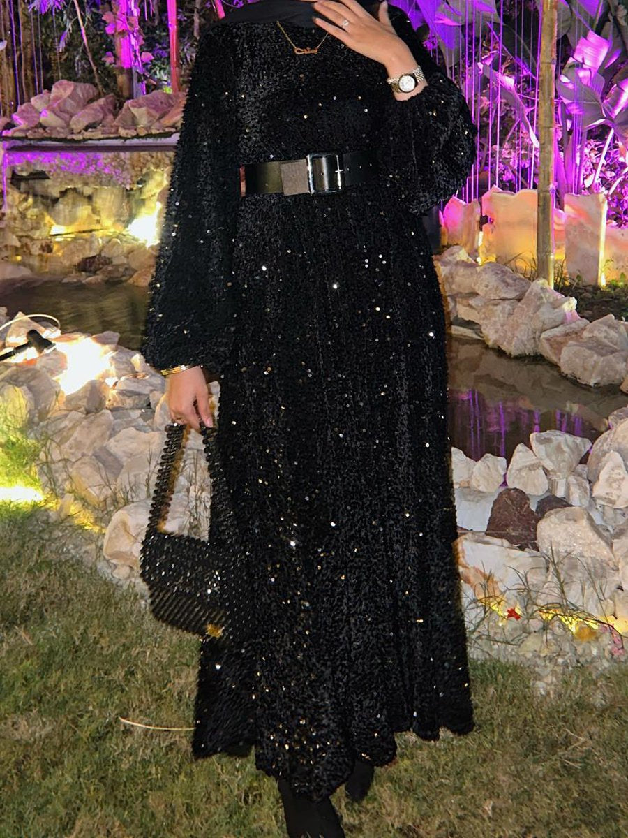 Natash - Vestido de lentejuelas de manga larga y escote redondo