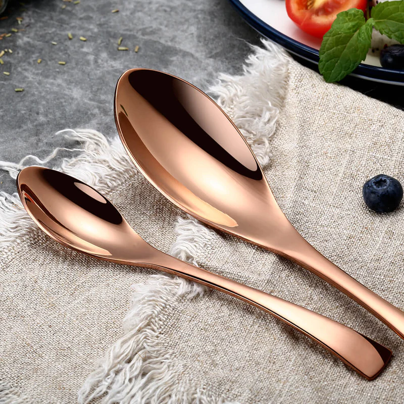 La cena real comienza donde cada bocado se siente como una sinfonía de felicidad dorada. Elaborado con los más altos estándares de acero inoxidable negro jet electrochapado, las suaves hendiduras y curvas de este juego de cubiertos aportan un lujo discreto a los entornos de comedor. Maestramente versátil, esta colección de cubiertos artesanales pasa sin esfuerzo de las comidas familiares casuales a las sofisticadas soirées, garantizando que cada bocado sea indiscutiblemente gourmet.