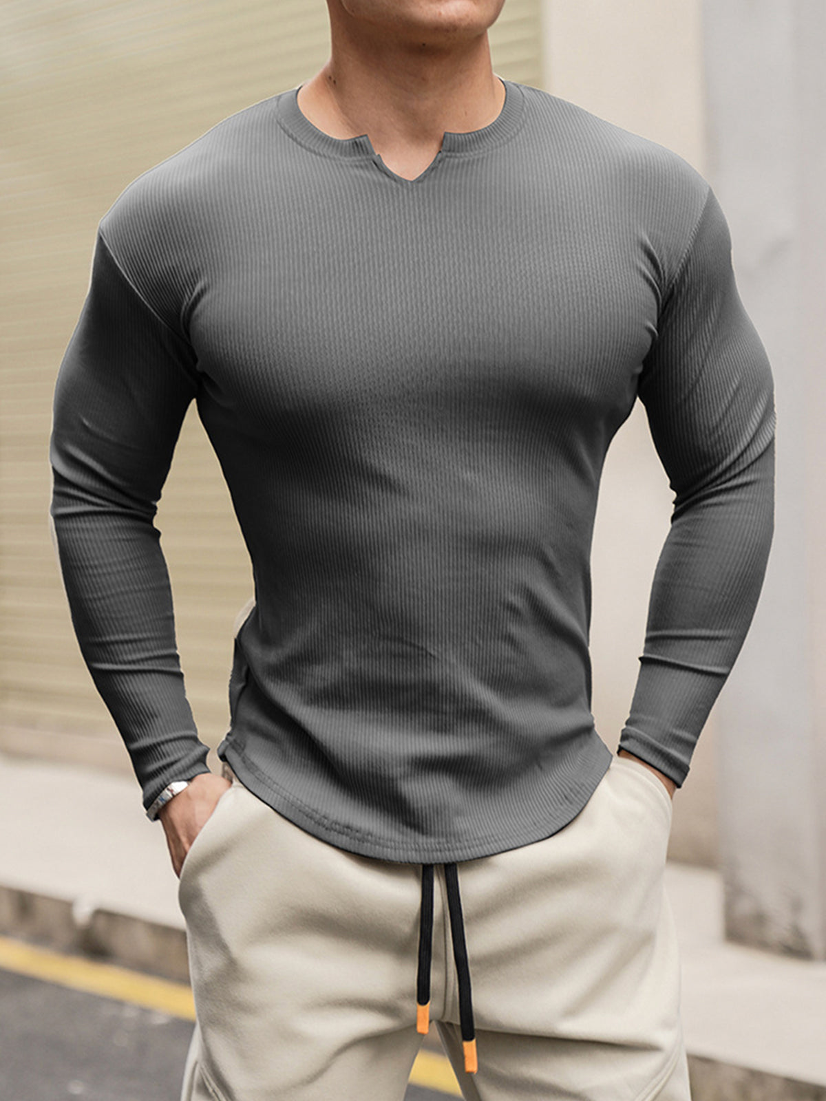 RibFlex Muscle Cuello en V Manga Larga