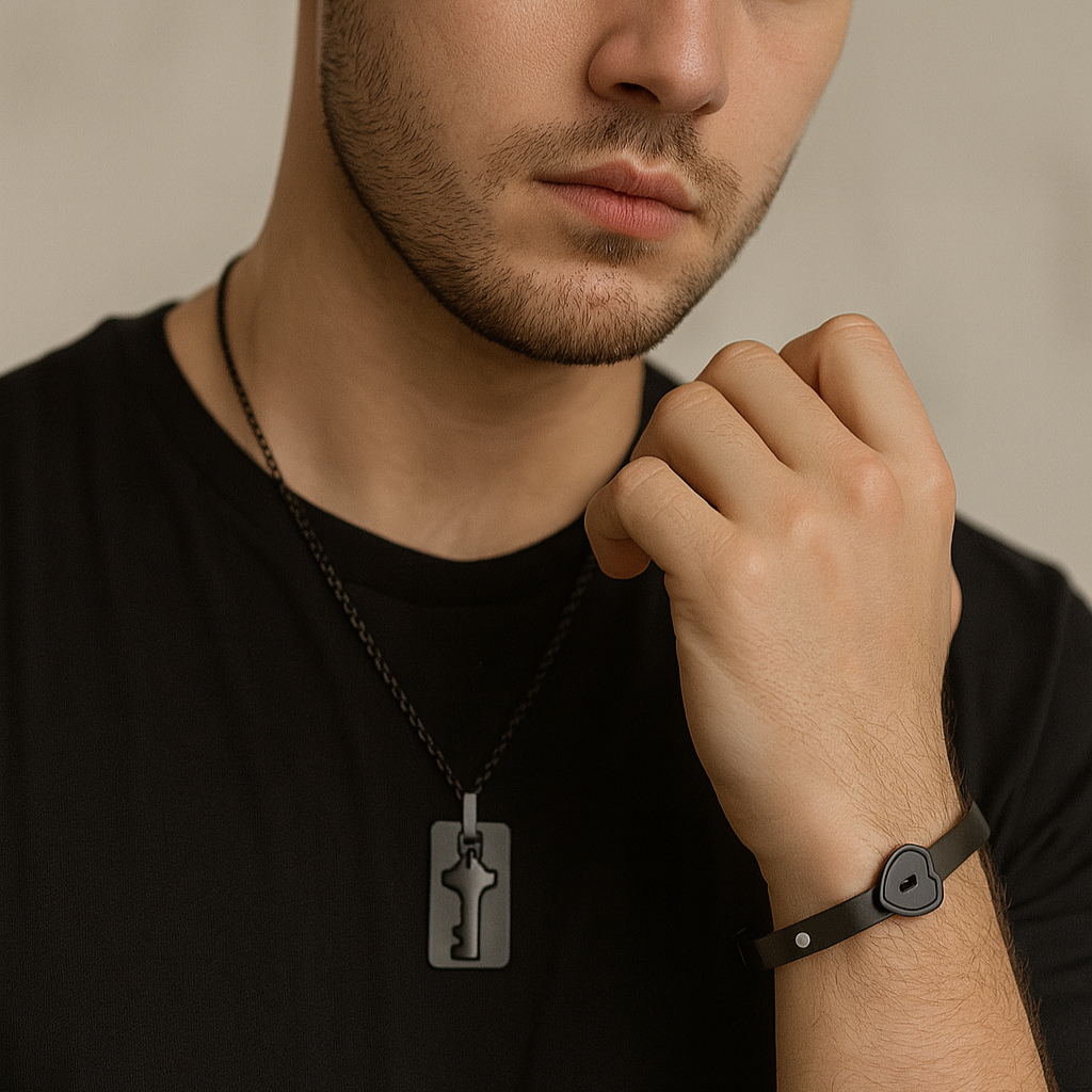 Ideal como regalo de aniversario, declaración de amor o accesorio diario para parejas que desean llevar algo más que una joya: un mensaje. Diseñado para quienes creen en vínculos reales.
