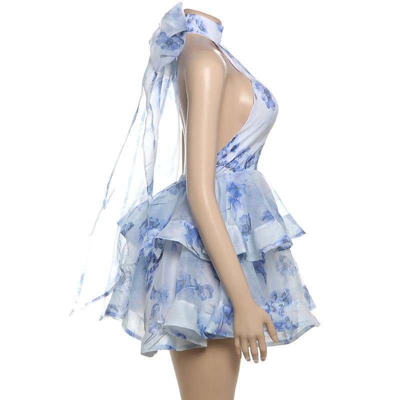 Valeria - Vestido Corto Estampado con Espalda Descubierta y Cuello Halter